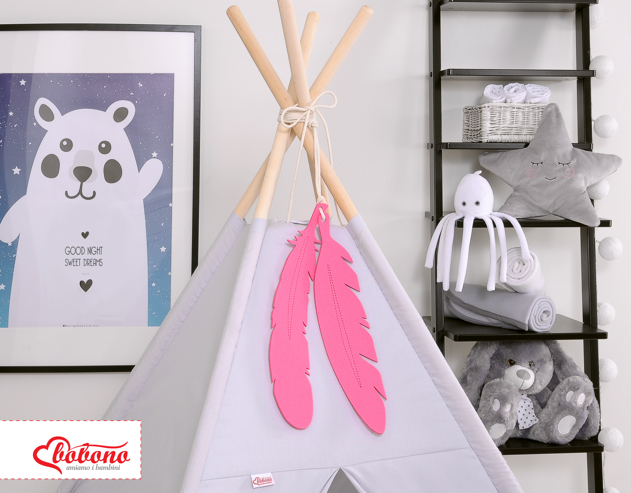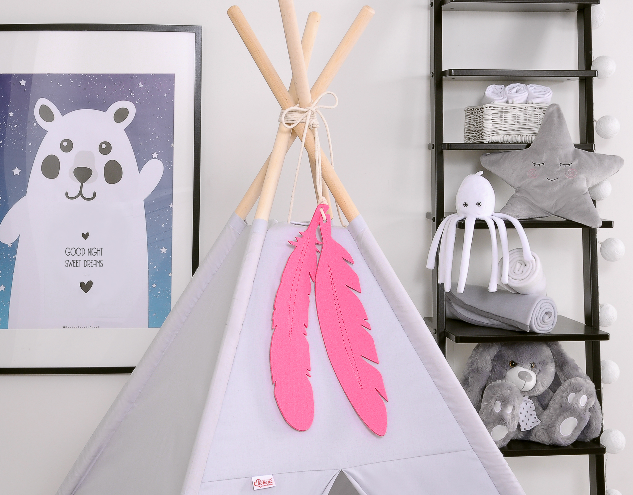 Decorative felt feathers 2pcs - pink Decorative felt feathers. Beautiful decoration of the children's room. Made of felt 4mm thick. The feathers can be hung anywhere.