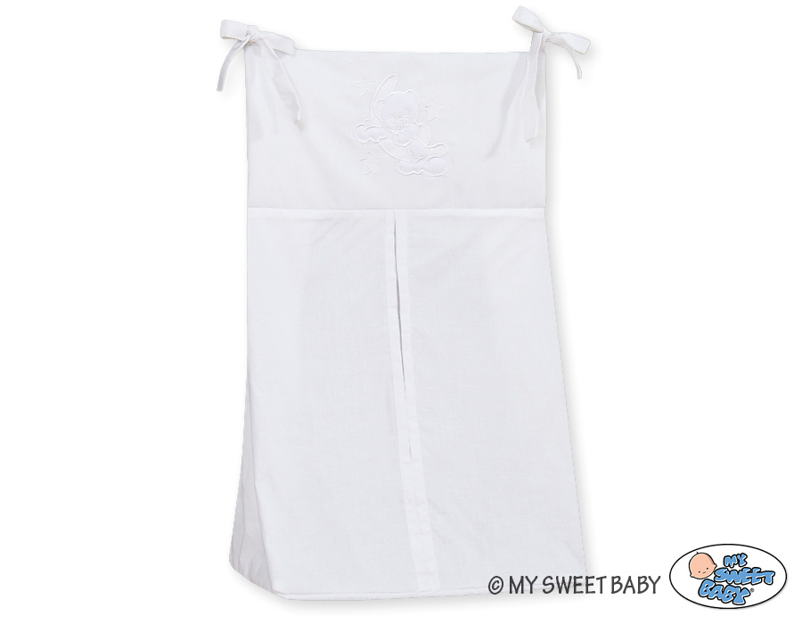 - The fabric is 100% cotton, - with embroidery, - washable at 40°, Two sets of ties at the top corners allow for easy attachment to most dressers and changing tables.