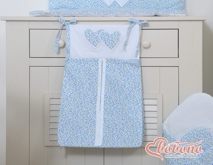 Diaper bag- Hanging Hearts blue flowers With the diaper bag they have all the necessary baby utensils at hand. Easy attachment.