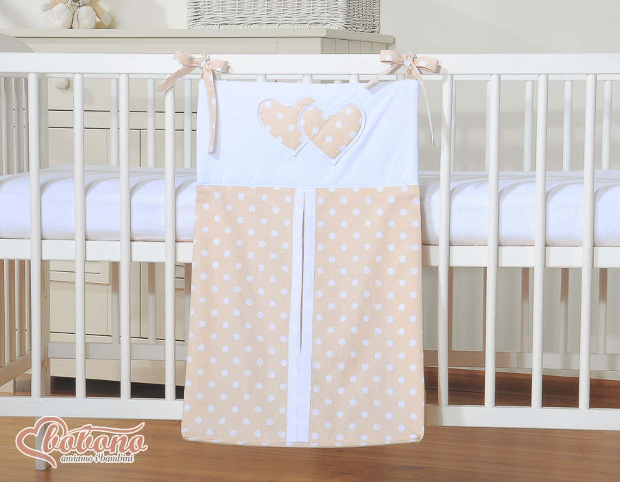 Diaper bag- Hanging Hearts white dots on beige With the diaper bag they have all the necessary baby utensils at hand. Easy attachment.