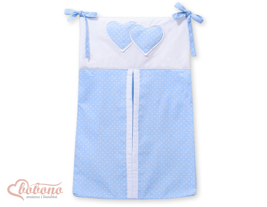 Diaper bag- Hanging hearts white dots on blue With the diaper bag they have all the necessary baby utensils at hand. Easy attachment.