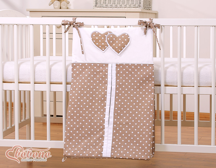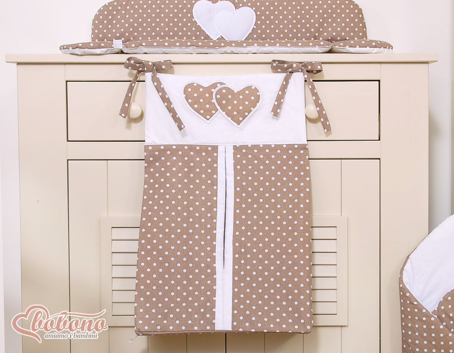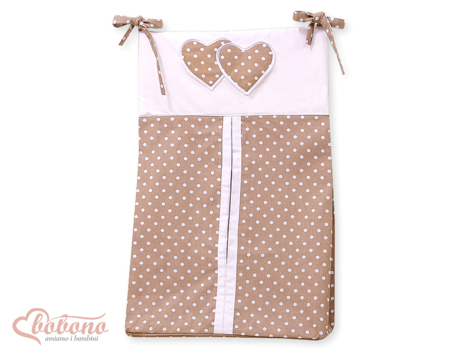 Diaper bag- Hanging Hearts white dots on brown With the diaper bag they have all the necessary baby utensils at hand. Easy attachment.
