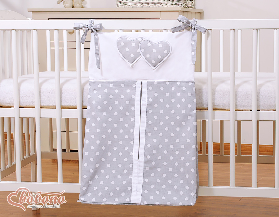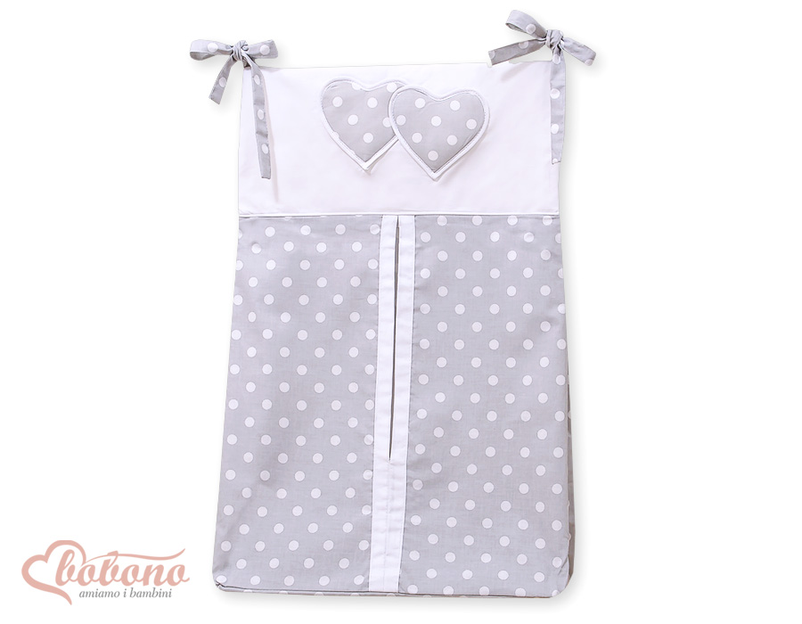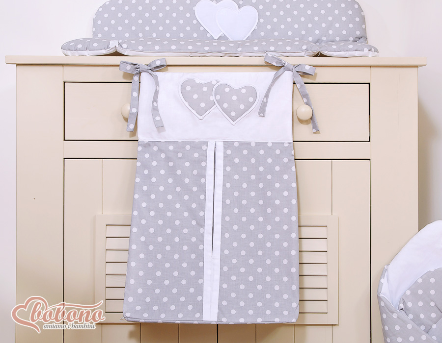 Diaper bag- Hanging Hearts white dots on Gray With the diaper bag they have all the necessary baby utensils at hand. Easy attachment.