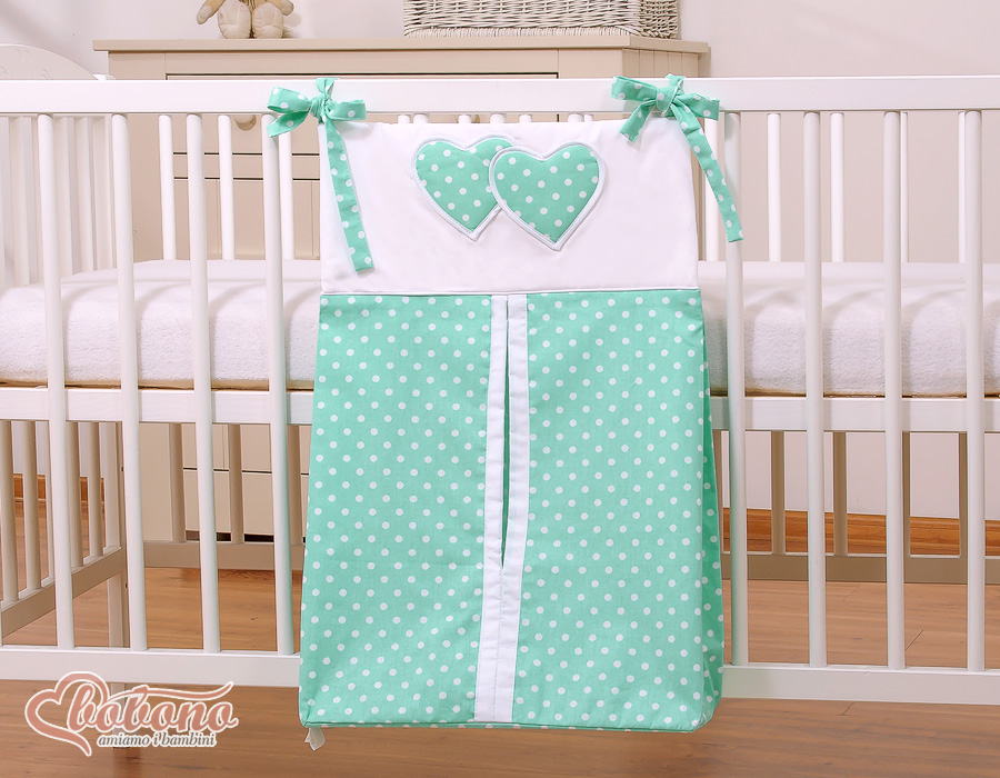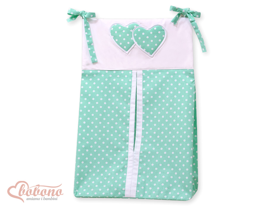 Diaper bag- Hanging Hearts white dots on mint With the diaper bag they have all the necessary baby utensils at hand. Easy attachment.