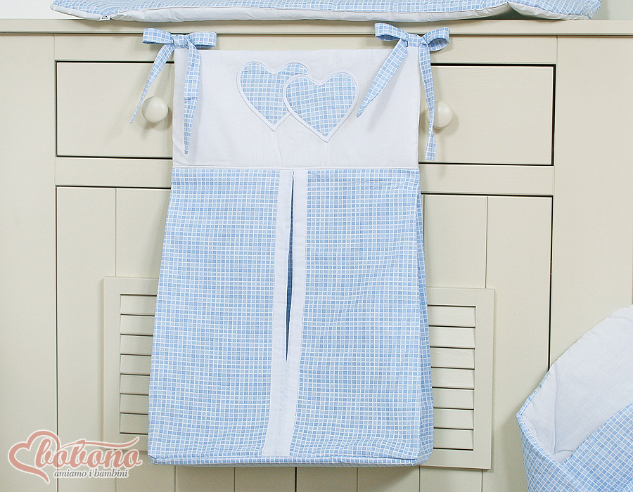 Diaper Nappy bag- Hanging Hearts blue checkered With the diaper bag they have all the necessary baby utensils at hand. Easy attachment.