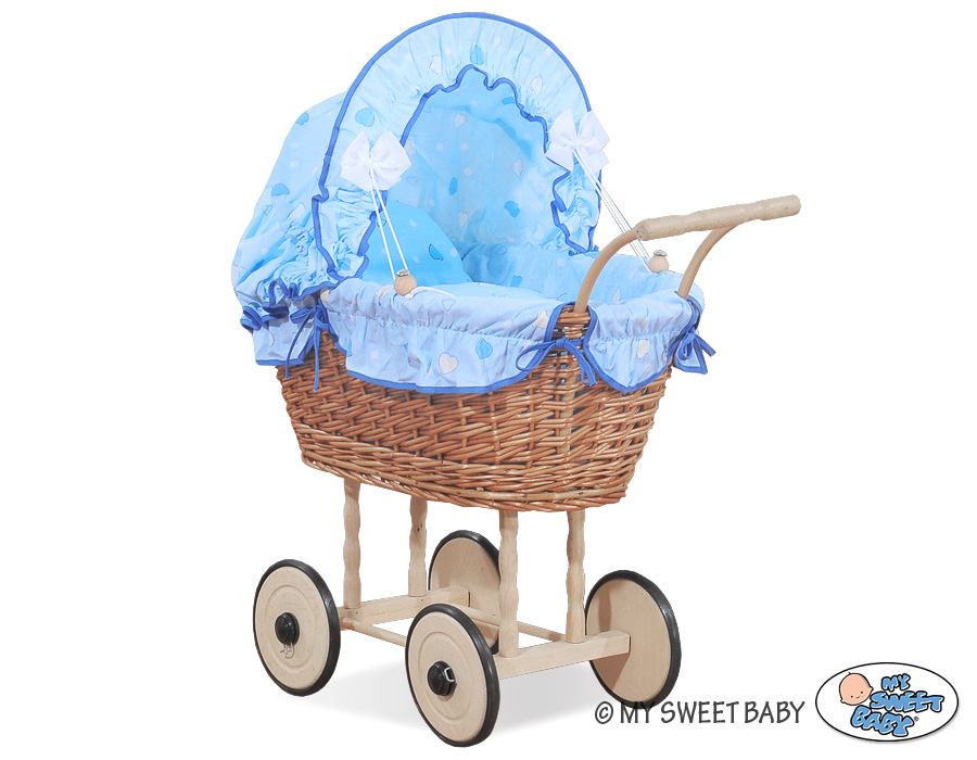 Hearts With Bedding Blue Wood And Wicker Natural Of Made Pram Doll