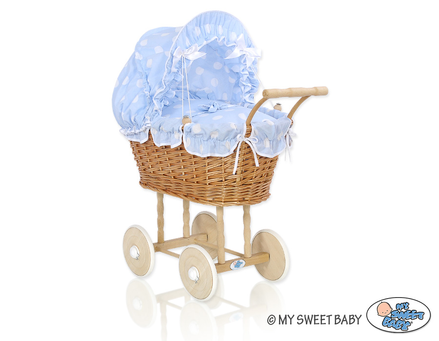 Dots White Big With Blue Wood And Wicker Natural Of Made Pram Doll