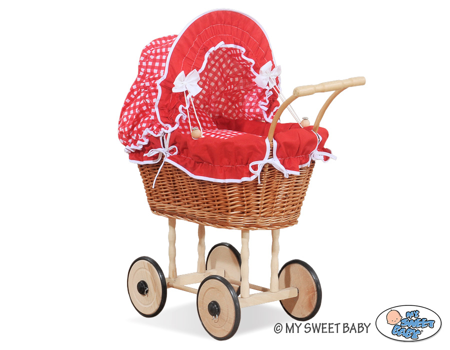 Bedding Check Red Wood And Wicker Natural Of Made Pram Doll