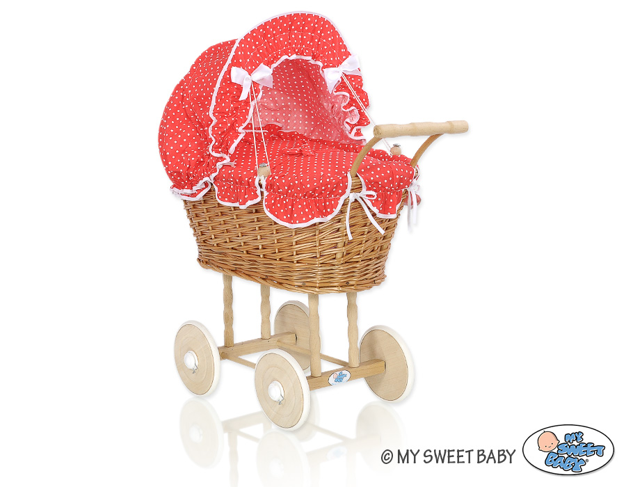 Dots White With Red Wood And Wicker Natural Of Made Pram Doll