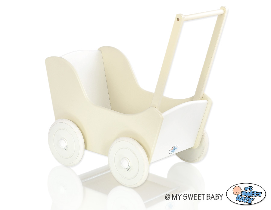Great gift for a little girl. The doll pram is the top product for children. Made of safe materials. Painted with ecological paints. Wheels are mounted on metal axles, with a click-clack mechanism, which makes them easier to turn and do not fall.