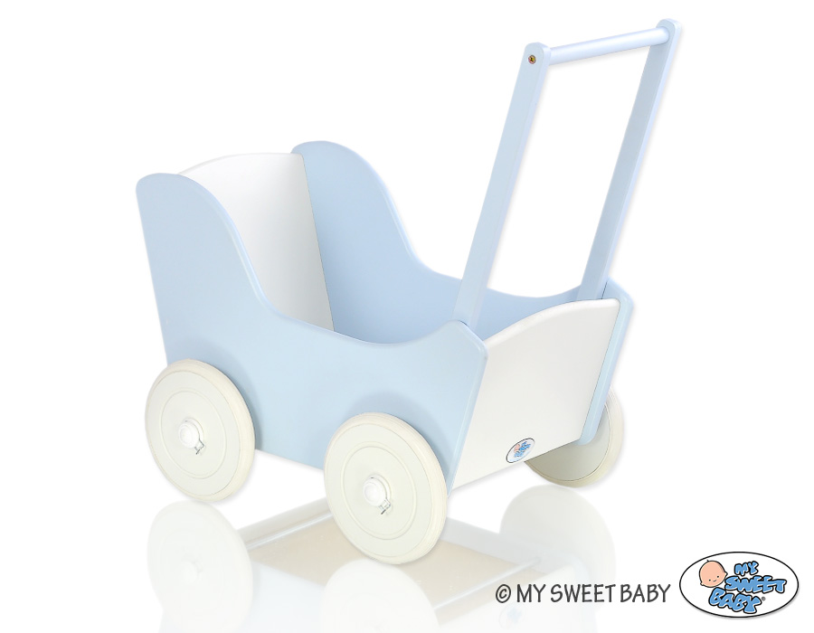 Great gift for a little girl. The doll pram is the top product for children. Made of safe materials. Painted with ecological paints. Wheels are mounted on metal axles, with a click-clack mechanism, which makes them easier to turn and do not fall.