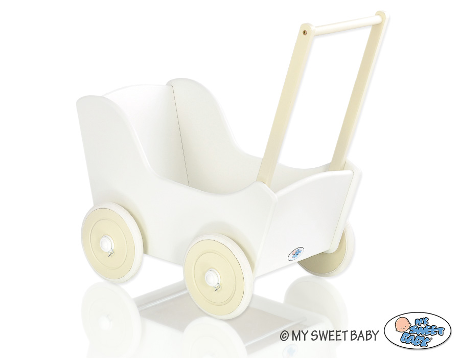 Great gift for a little girl. The doll pram is the top product for children. Made of safe materials. Painted with ecological paints. Wheels are mounted on metal axles, with a click-clack mechanism, which makes them easier to turn and do not fall.
