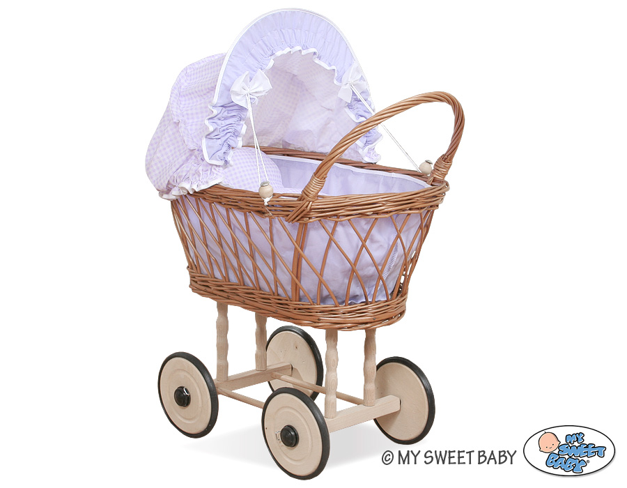 Bedding Check Lilac Wood And Wicker Natural Pram Doll