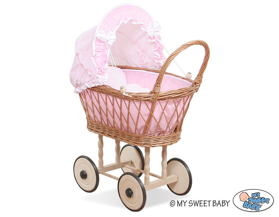 Bedding Check Pink Wood And Wicker Natural Pram Doll