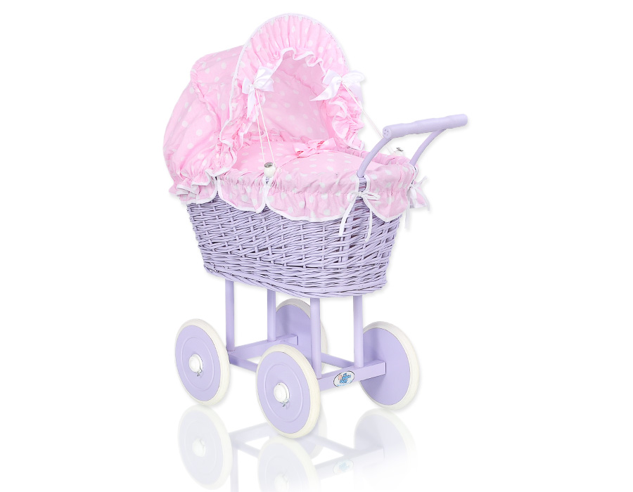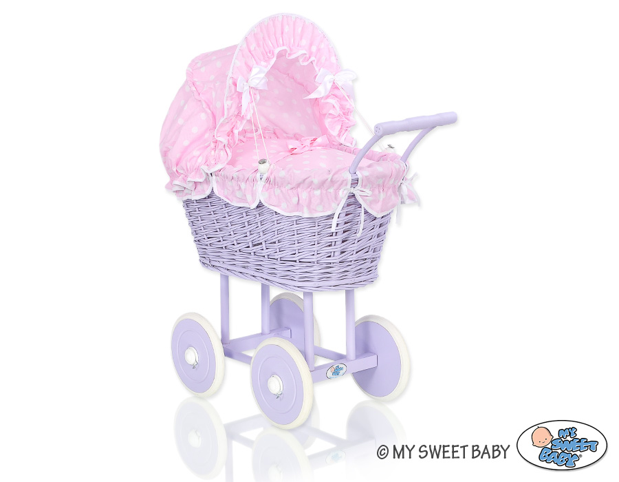 Baby Shop » Baby Toys » Doll prams » Wicker Doll prams » Lilac Wicker Dolls Prams » Doll pram no. 91699 Bedding Set White Dots on Pink