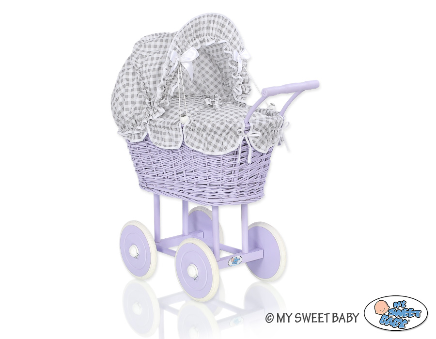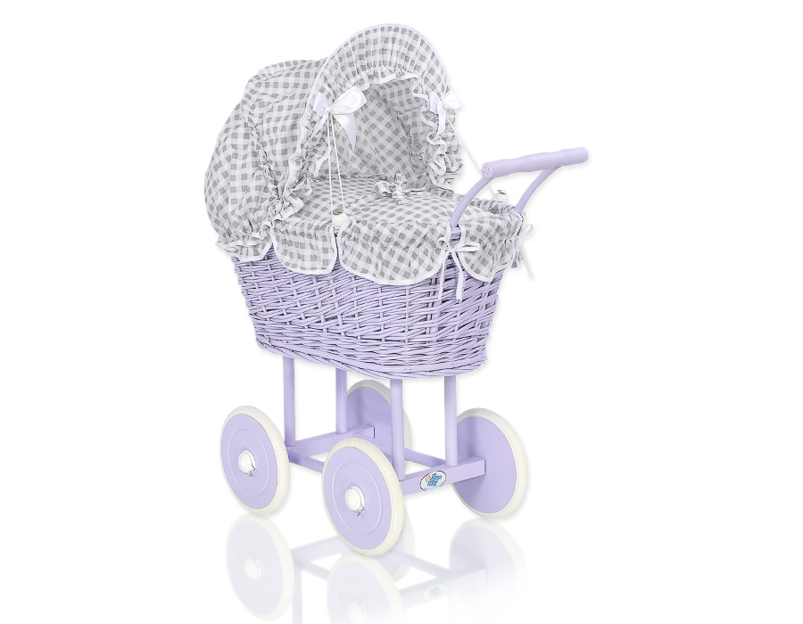 Baby Shop » Baby Toys » Doll prams » Wicker Doll prams » Lilac Wicker Dolls Prams » Doll pram no. 91699White Gray Checkered