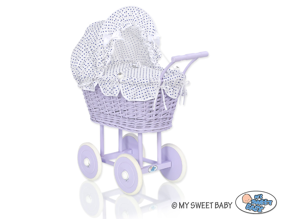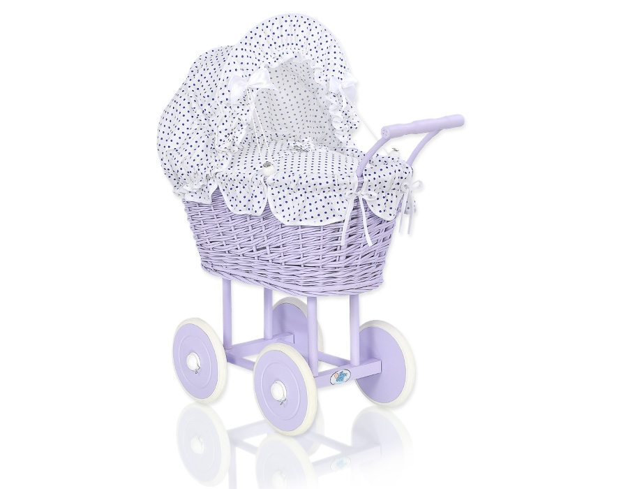 Baby Shop » Baby Toys » Doll prams » Wicker Doll prams » Lilac Wicker Dolls Prams » Doll pram no. 91699White with Navy Blue Dots Bedding Set