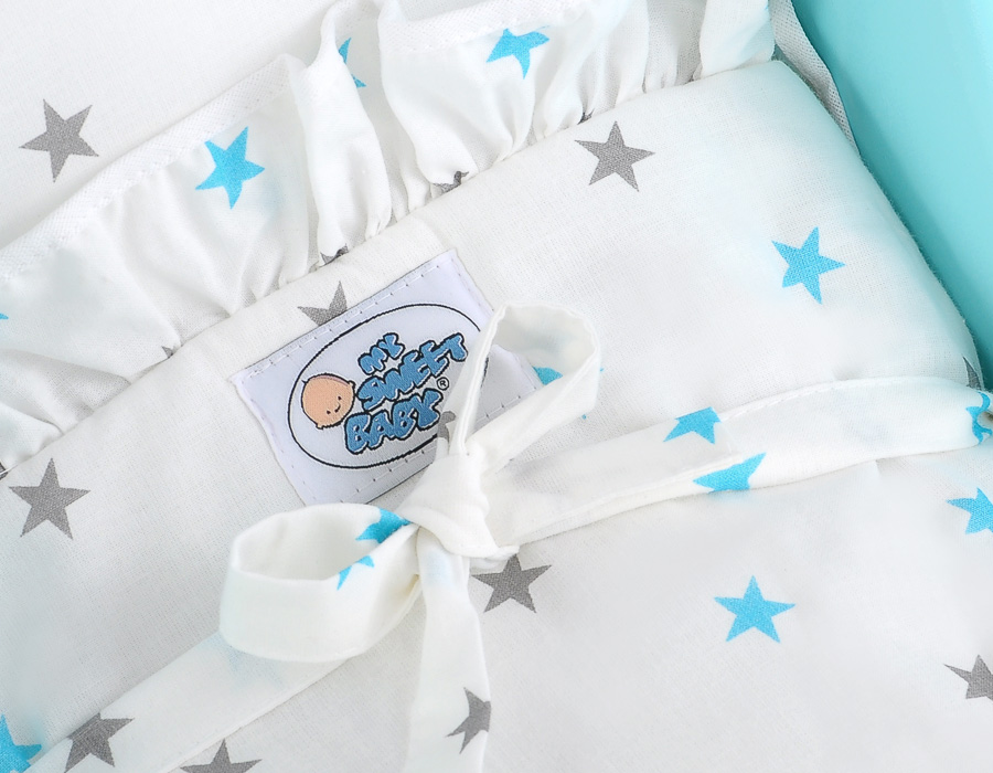 Stars Gray And Blue With White Bedding White With Turquoise Pram Doll