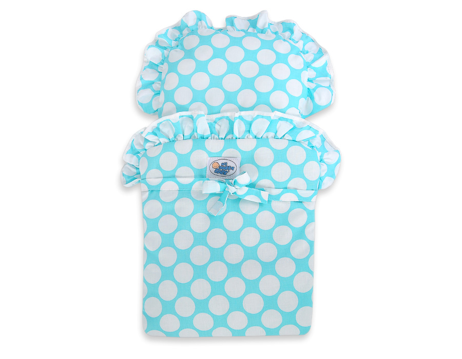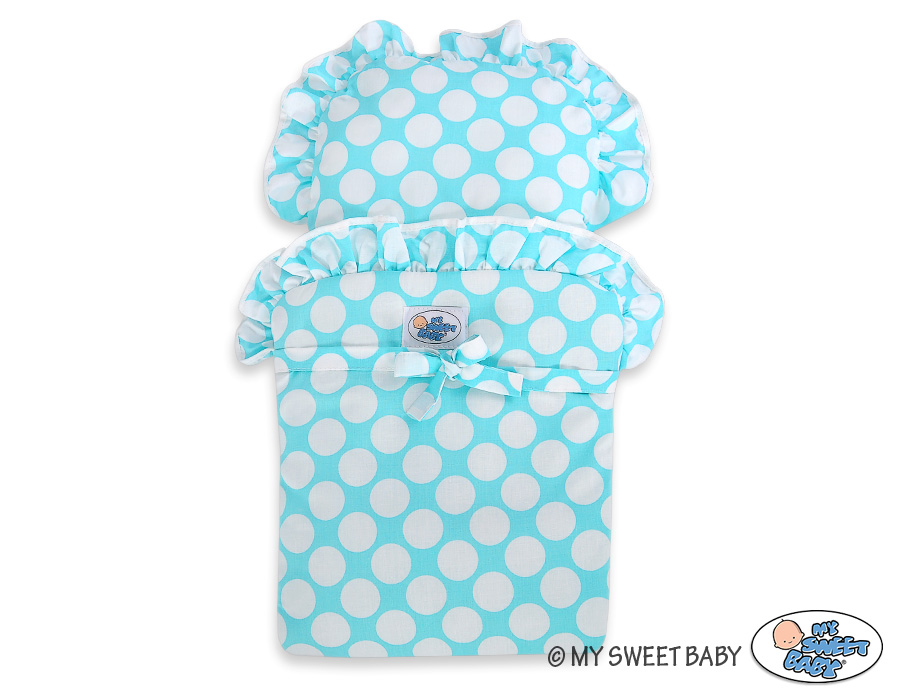 Set Bedding Dots White Big With Turquoise Turquoise With White Pram Doll