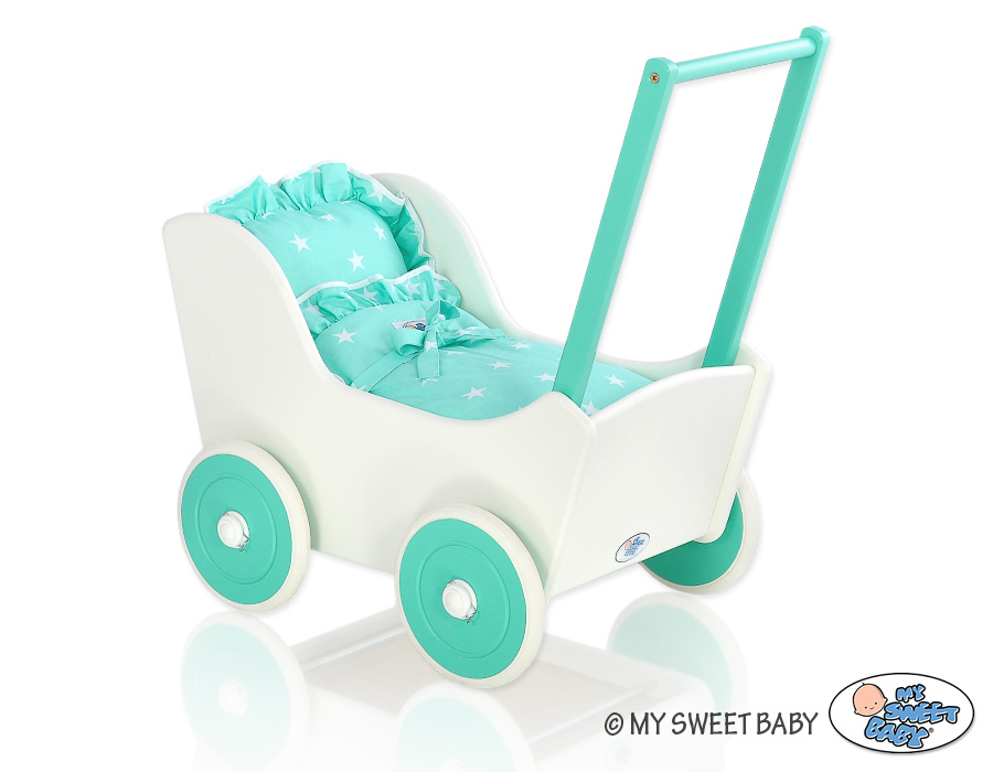Doll pram Wood White with Mint -717