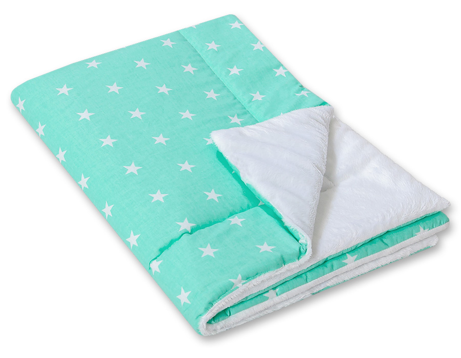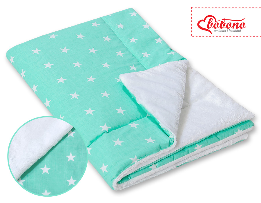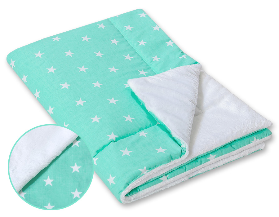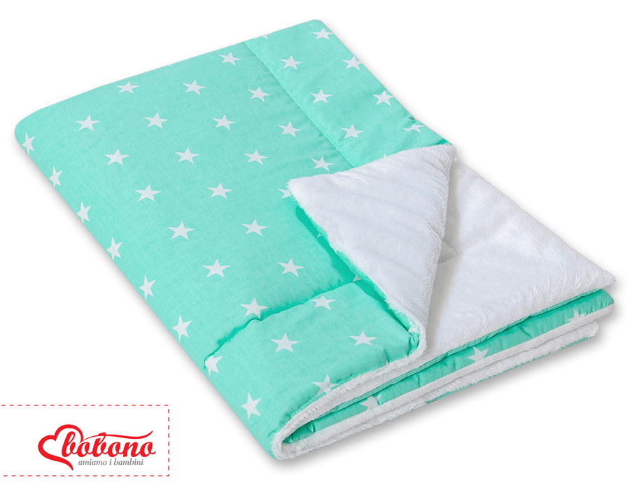 Extremely soft, fluffy, comfortable baby reversible blanket. Ideal for the road and at home.