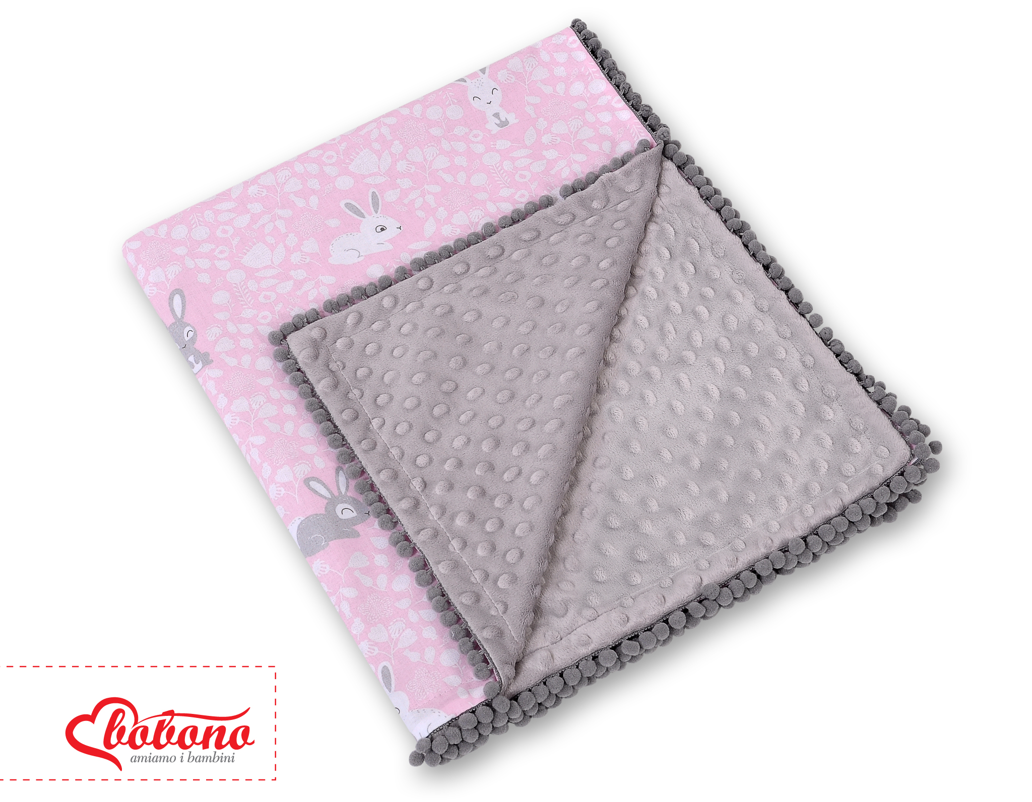 Baby Shop » Bedding sets for cots and beds » Collection FUN & JOY » Double-sided blanket minky with pompons » Double-sided baby blanket minky with pompoms - pink rabbits