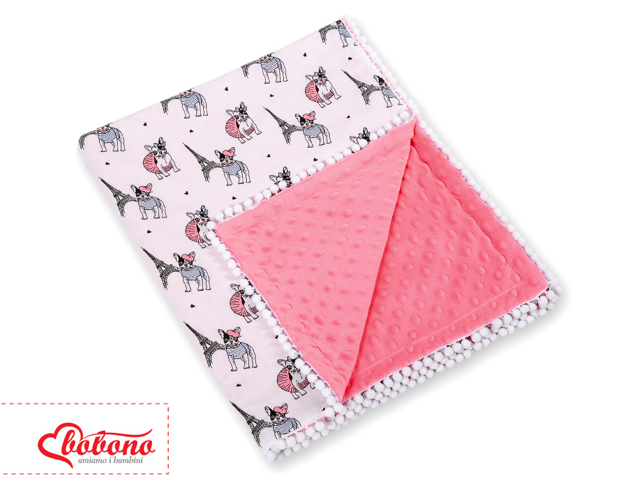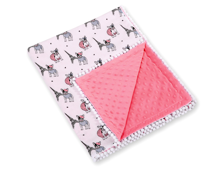 Baby Shop » Bedding sets for cots and beds » Collection FUN & JOY » Double-sided blanket minky with pompons » Double-sided baby blanket minky with pompons - doggies white