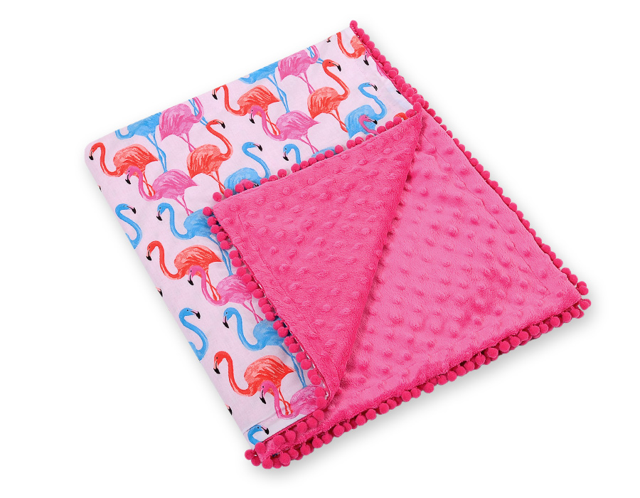 Double-sided baby blanket minky with pompons - flamingoDouble-sided baby blanket minky with pompons - flamingoDouble-sided baby blanket minky with pompons - flamingo