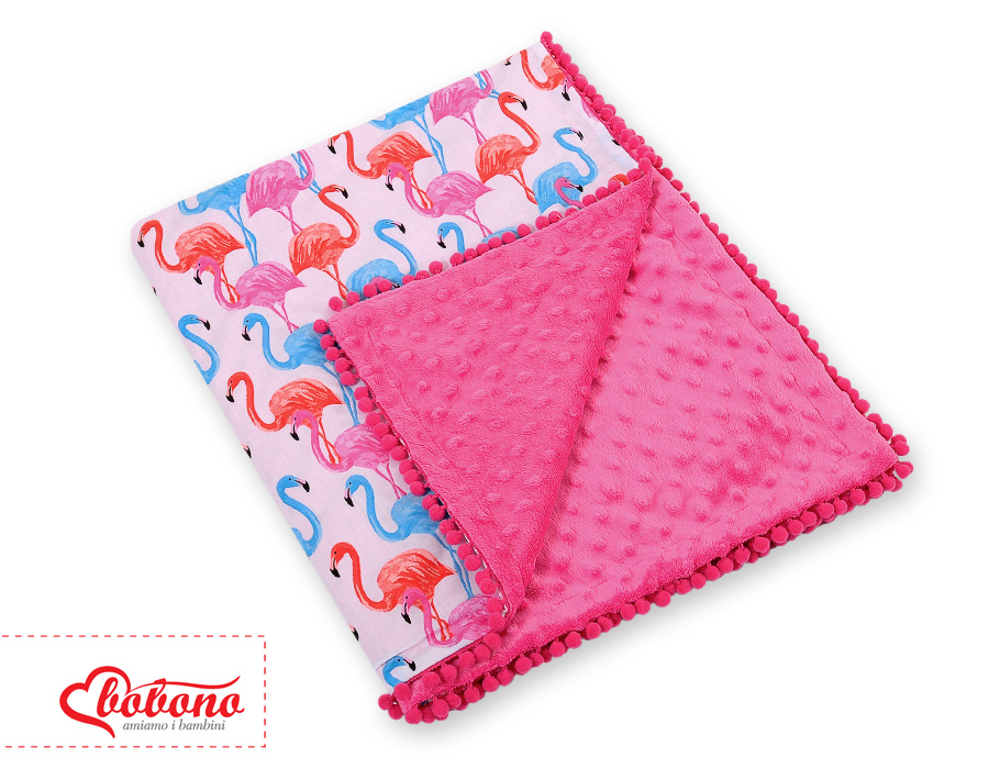Baby Shop » Bedding sets for cots and beds » Collection FUN & JOY » Double-sided blanket minky with pompons » Double-sided baby blanket minky with pompons - flamingo
