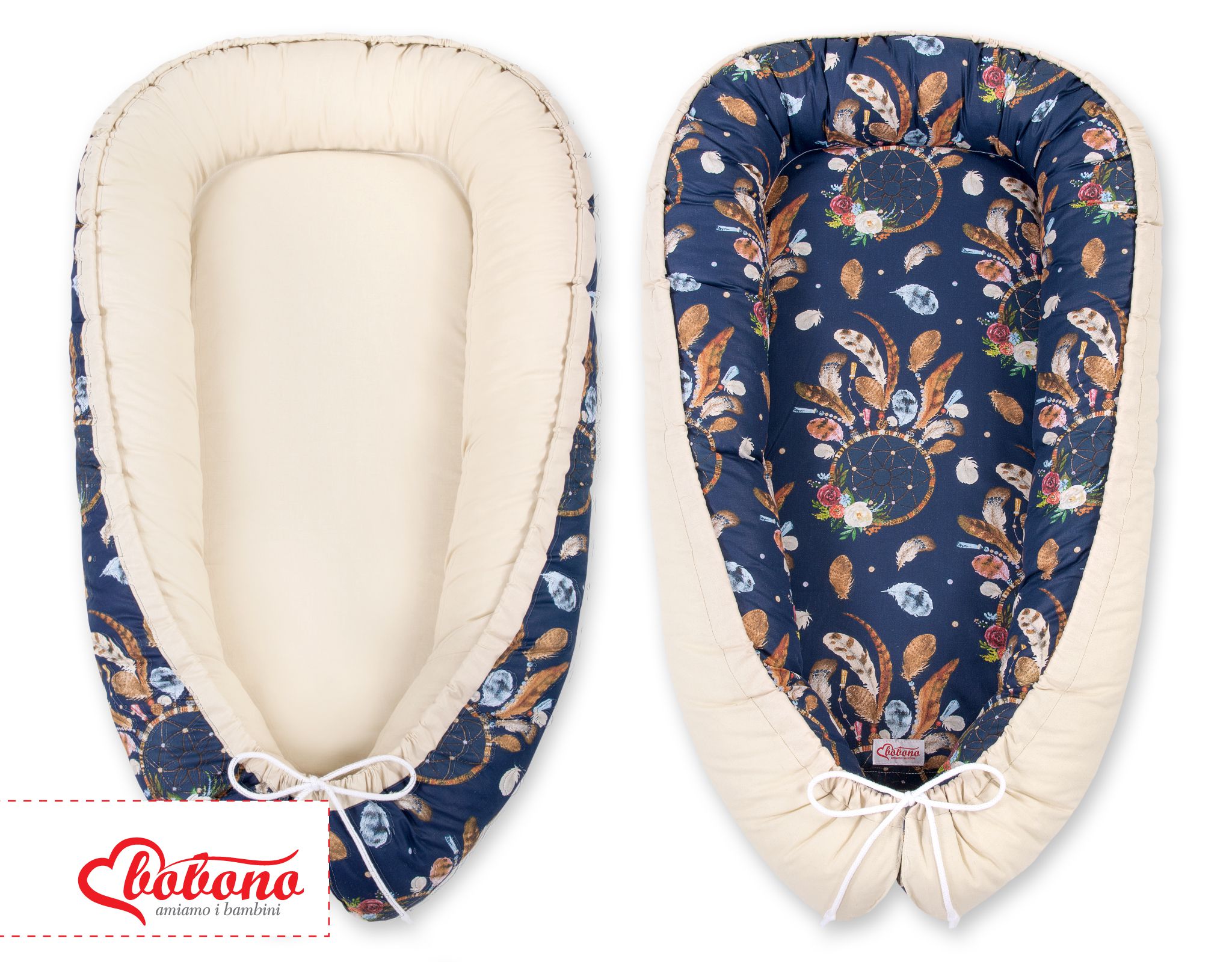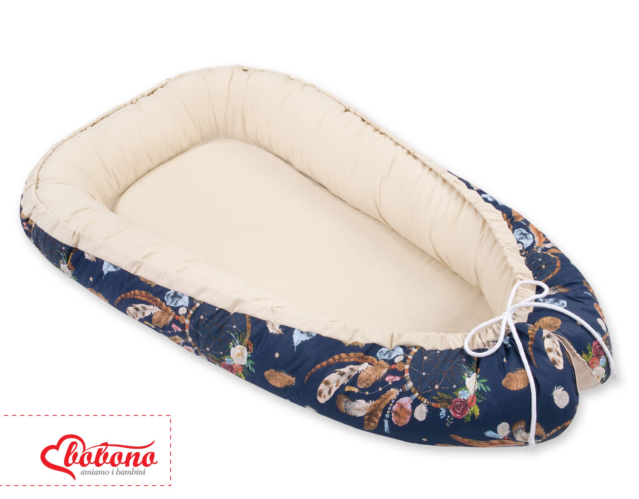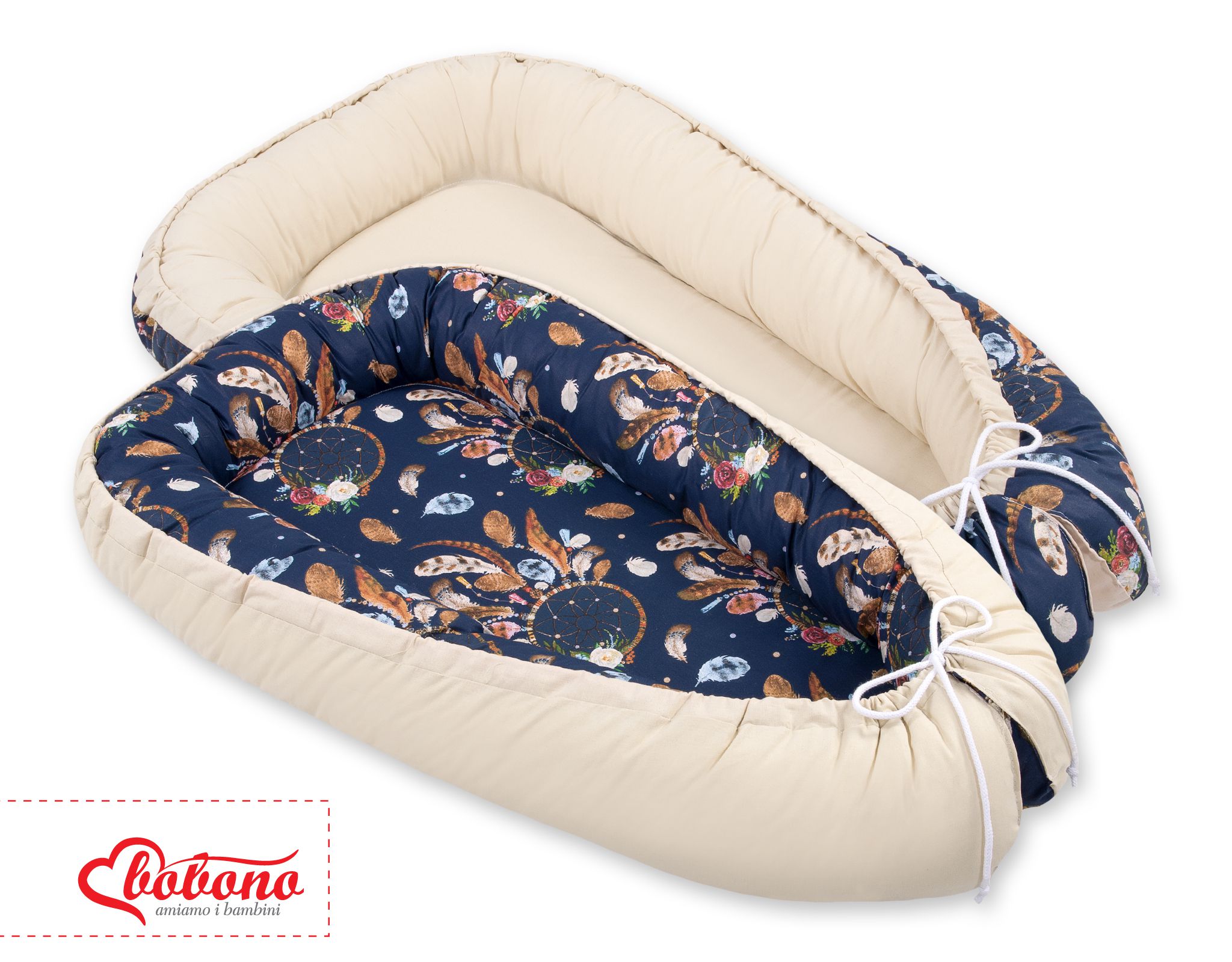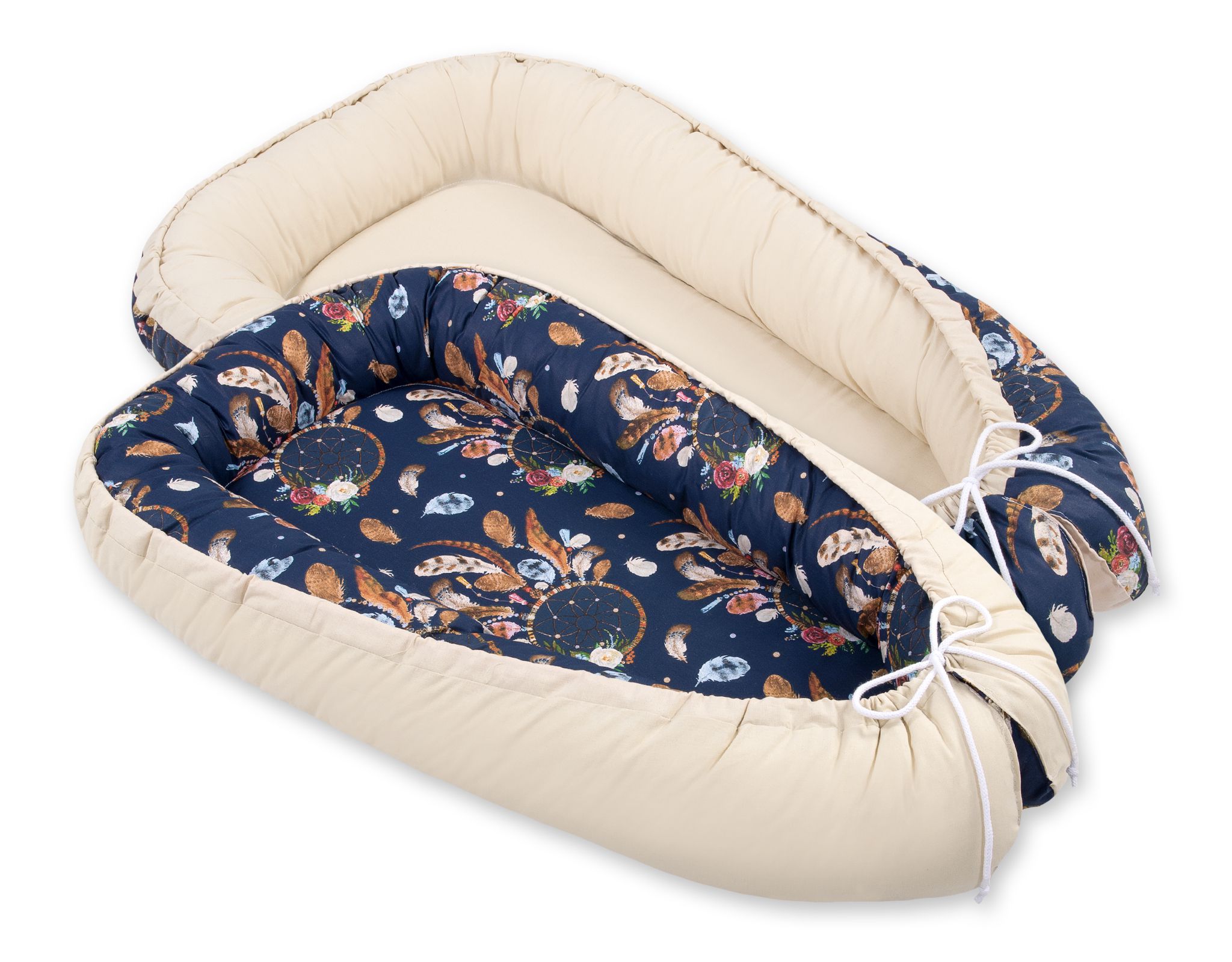 Baby Shop » Bedding sets for cots and beds » Collection FUN & JOY » Baby nest » Double-sided Babynest- dream catchers dark blue/beige