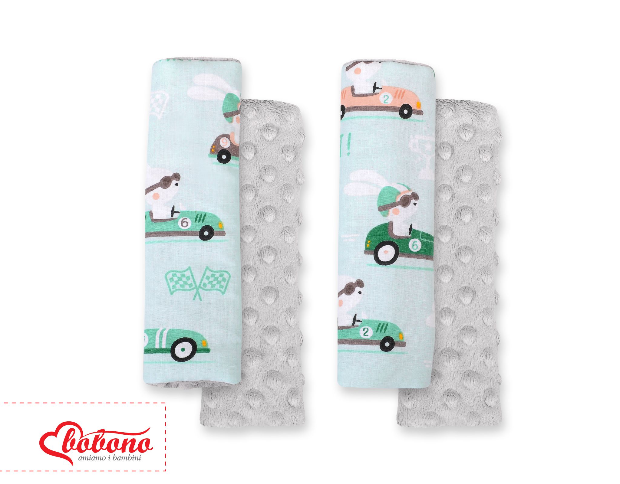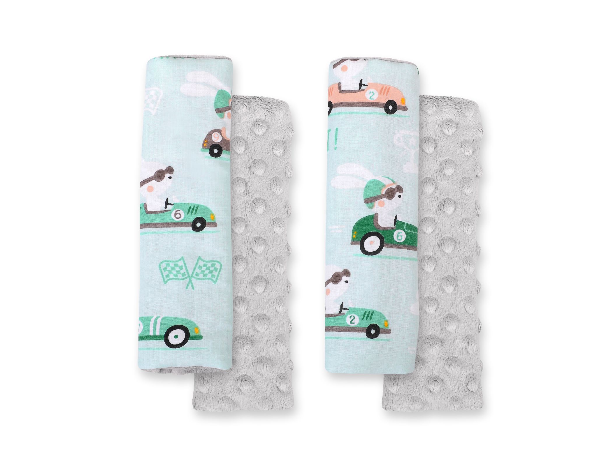 Double sided car seat belts pads Baby Shoulders mint rabbits/gray