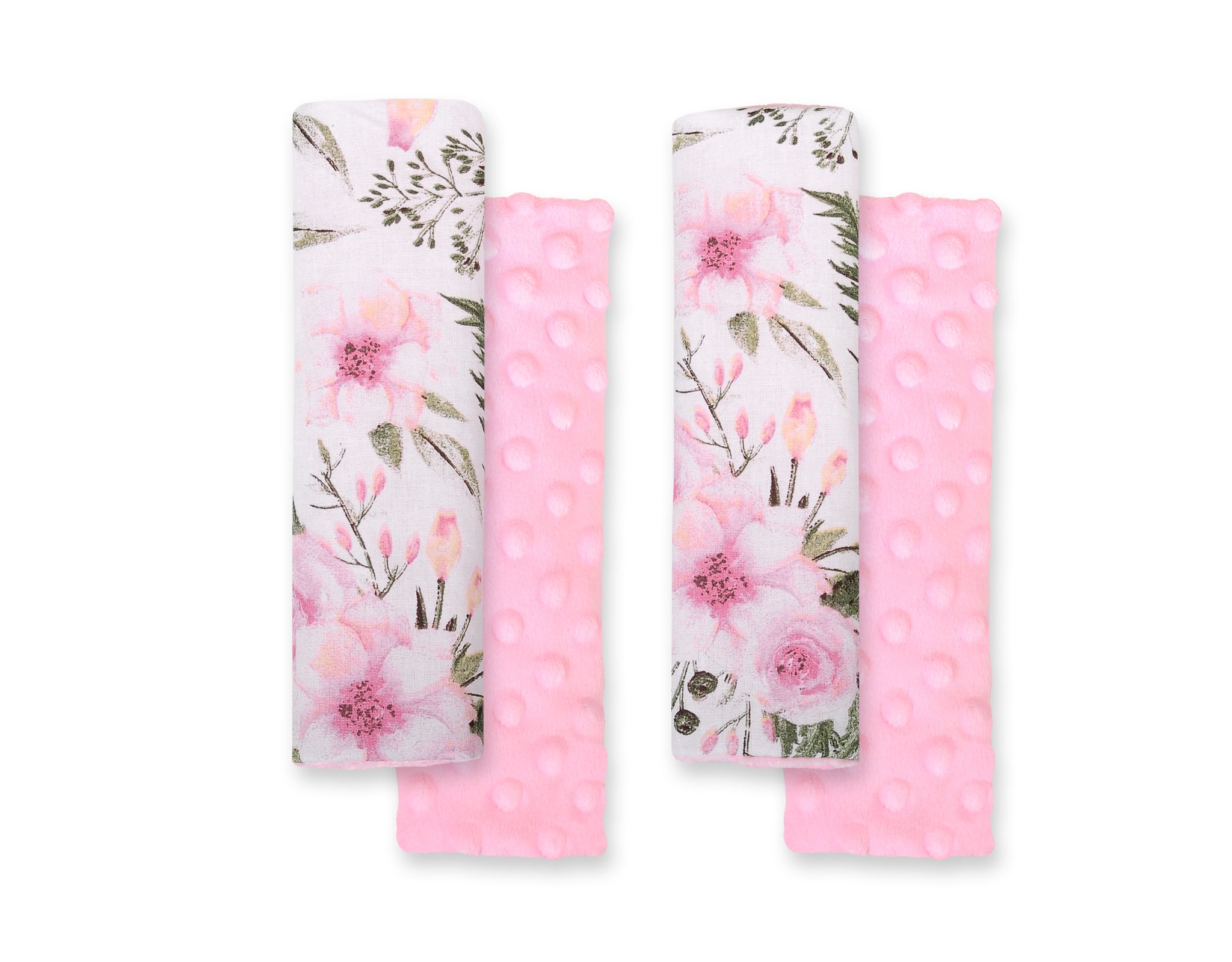 Double sided car seat belts pads Baby Shoulders  peony flower pink/pink