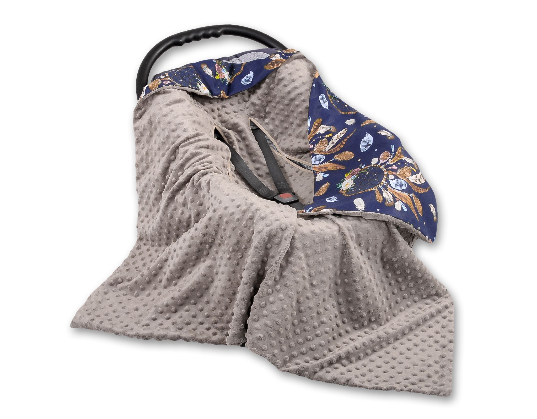 This great warm and fluffy Double- sided car seat blanket. Perfectly protects your child from cold.