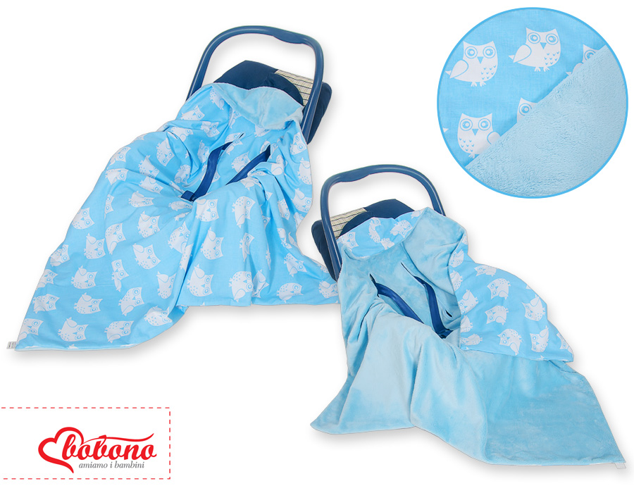 This great warm and fluffy Double- sided car seat blanket. Perfectly protects your child from cold.