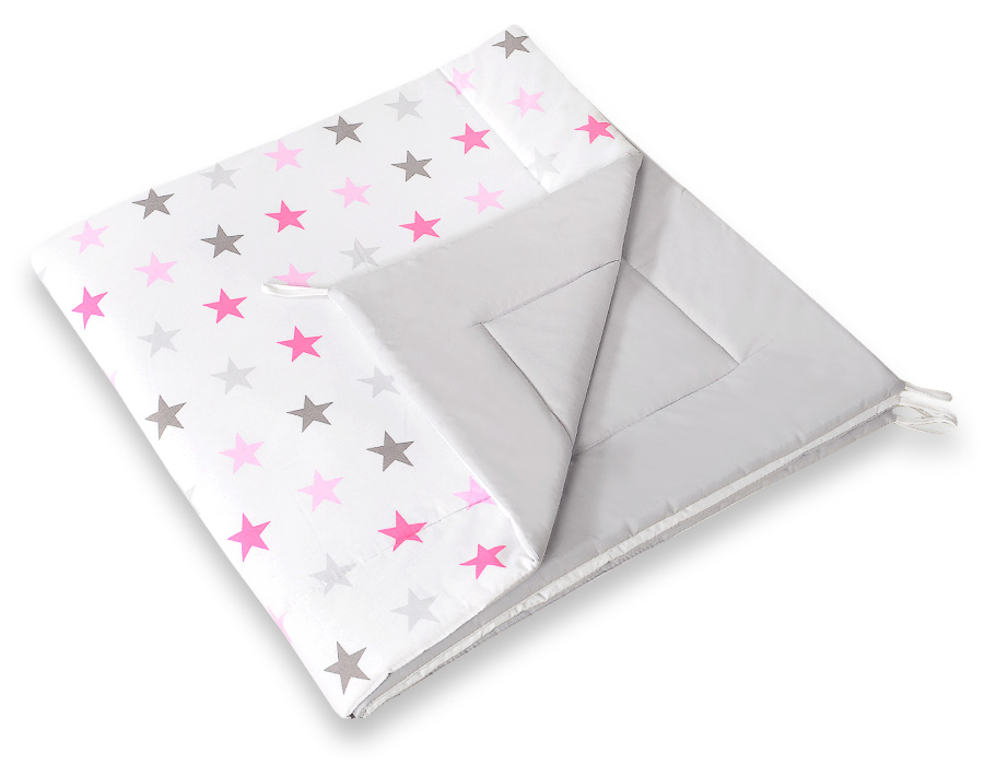 Double-sided teepee playmat- Gray-pink stars/Gray Double-sided playmat for teepee tent. She can be used inside, outside and in the garden. The blanket cover is from the same material as teepee play tent and therefore suits perfect to our teepee play tent. In the production of the play mat only natural materials are used. The fabric is made from 100% cotton and Oeko-Tex 100 certified. The blanket can be washed in the washing machine (30°C).