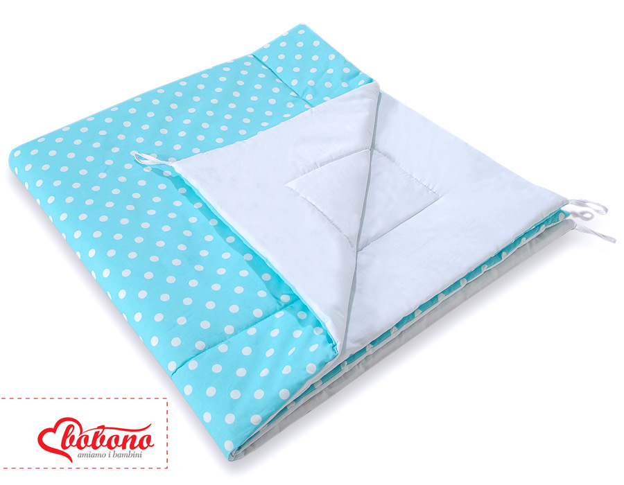 Double-sided teepee playmat- White dots on turquoise Double-sided playmat for teepee tent. She can be used inside, outside and in the garden. The blanket cover is from the same material as teepee play tent and therefore suits perfect to our teepee play tent. In the production of the play mat only natural materials are used. The fabric is made from 100% cotton and Oeko-Tex 100 certified. The blanket can be washed in the washing machine (30°C).