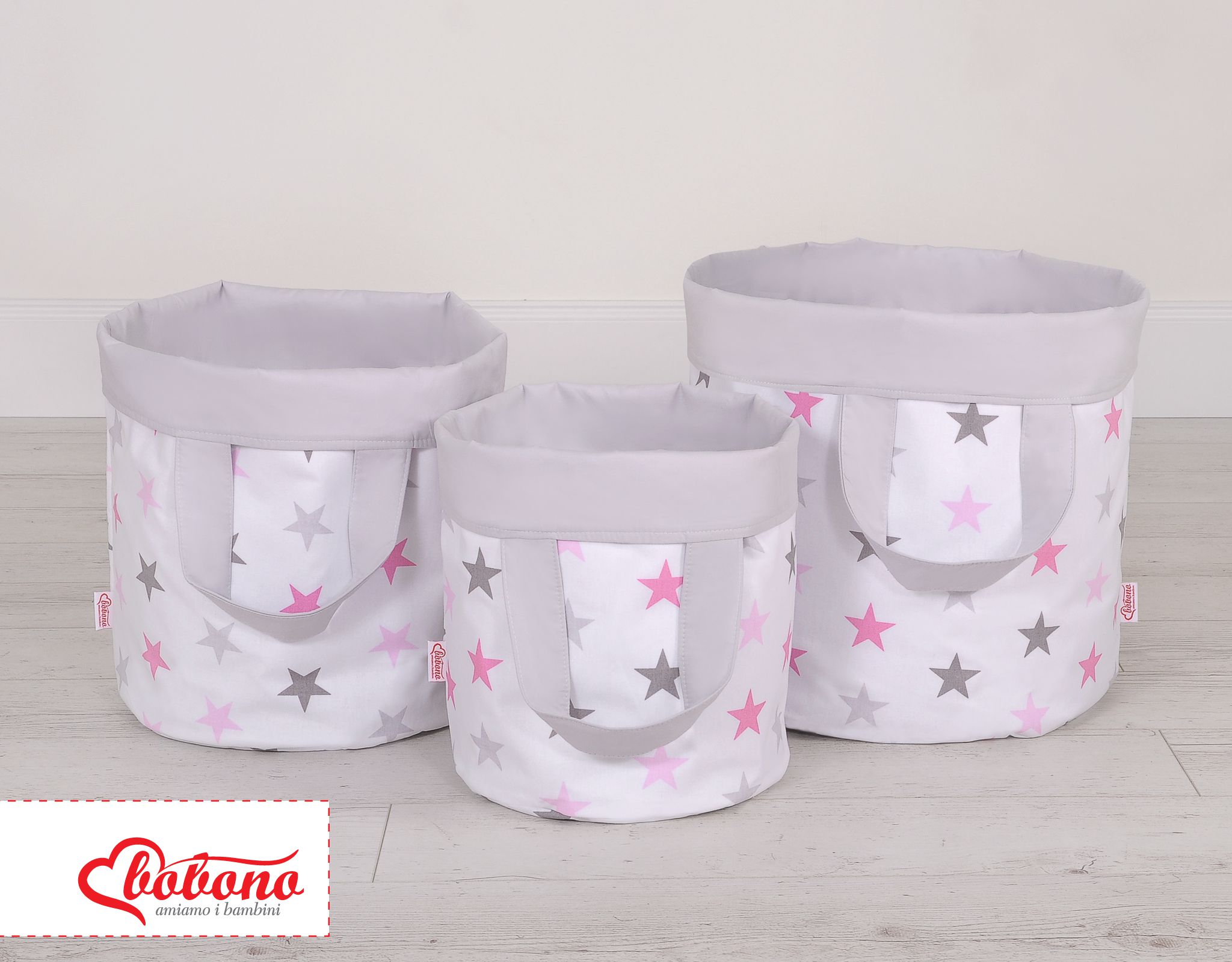 Baby Shop » Baby Toys » Double-sided toy basket » Double-sided toy basket L » Double-sided toy basket L- Gray-pink stars/Gray