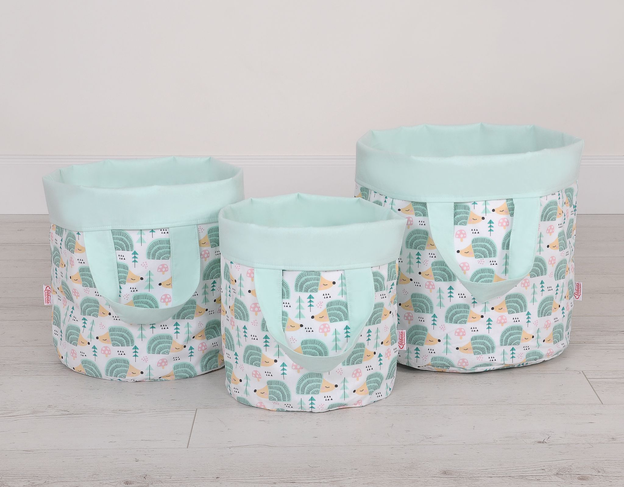 Baby Shop » Baby Toys » Double-sided toy basket » Double-sided toy basket M » Double-sided toy basket M - hedgehogs mint/mint