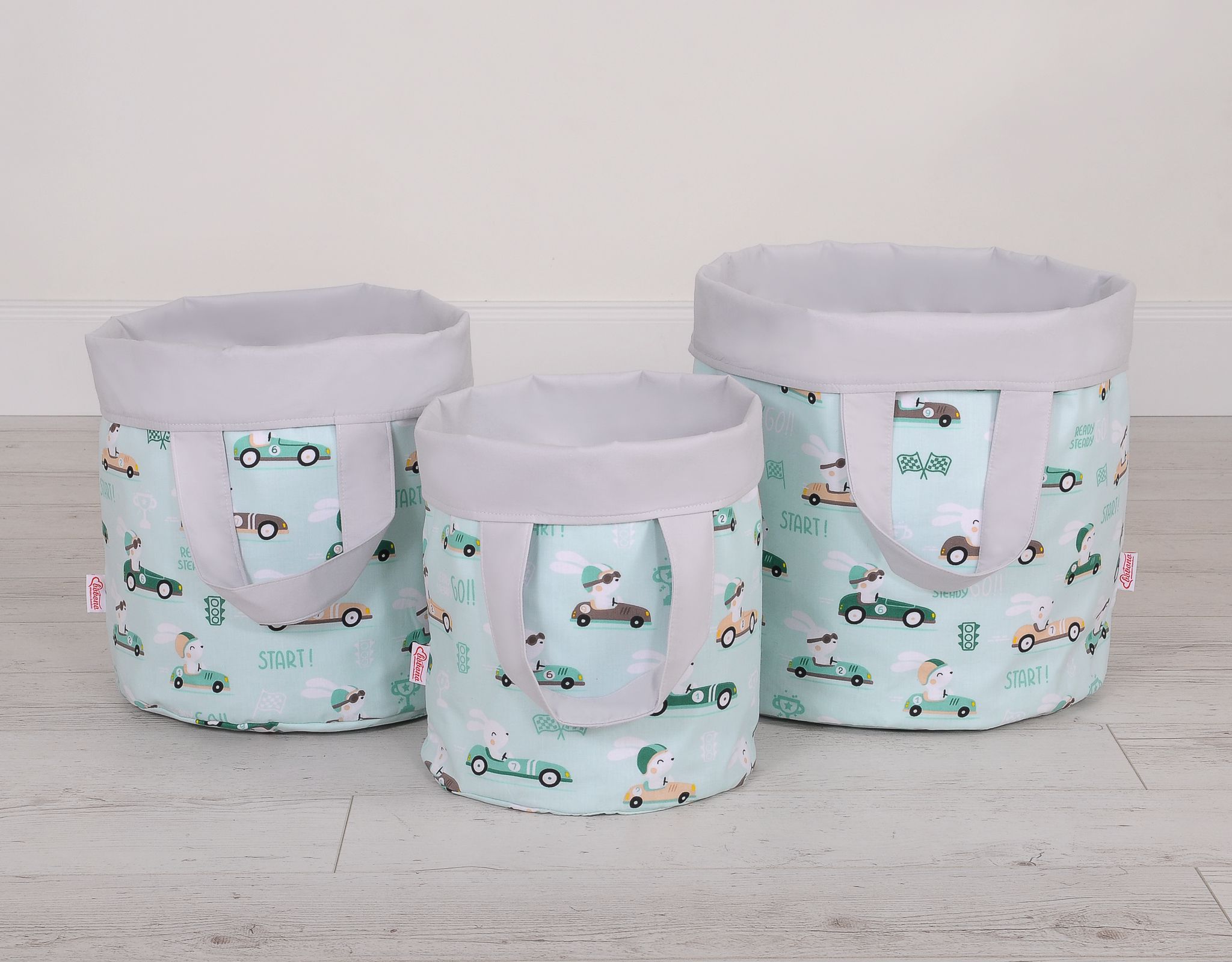 Baby Shop » Baby Toys » Double-sided toy basket » Double-sided toy basket M » Double-sided toy basket M- mint rabbits/gray