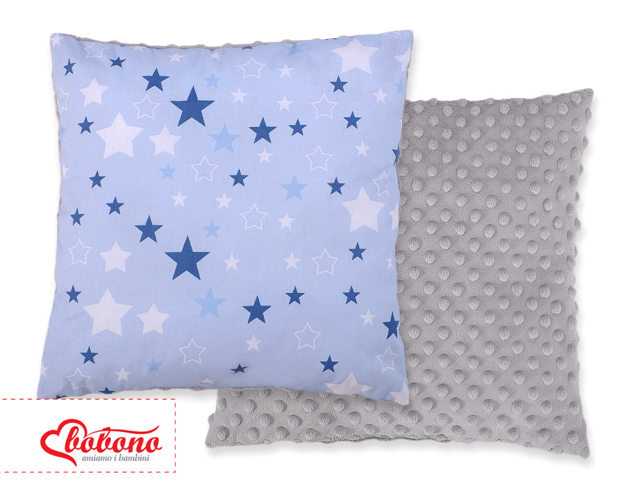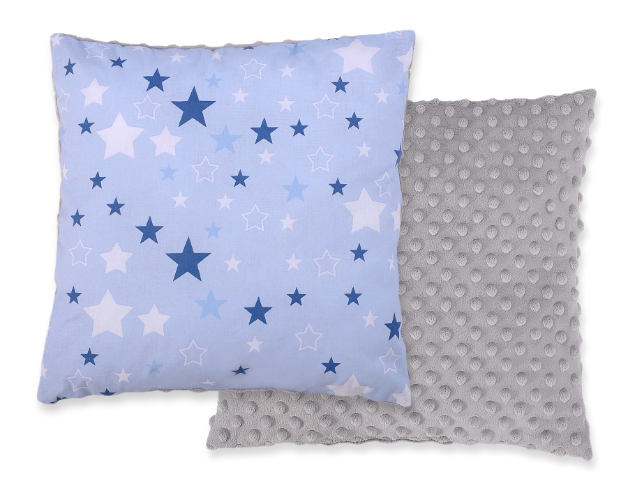 Baby Shop » Bedding sets for cots and beds » Collection FUN & JOY » Doublesided Pillow (minky) » Doublesided Baby - Rest Decorative Pillow -blue-navy blue stars/gray