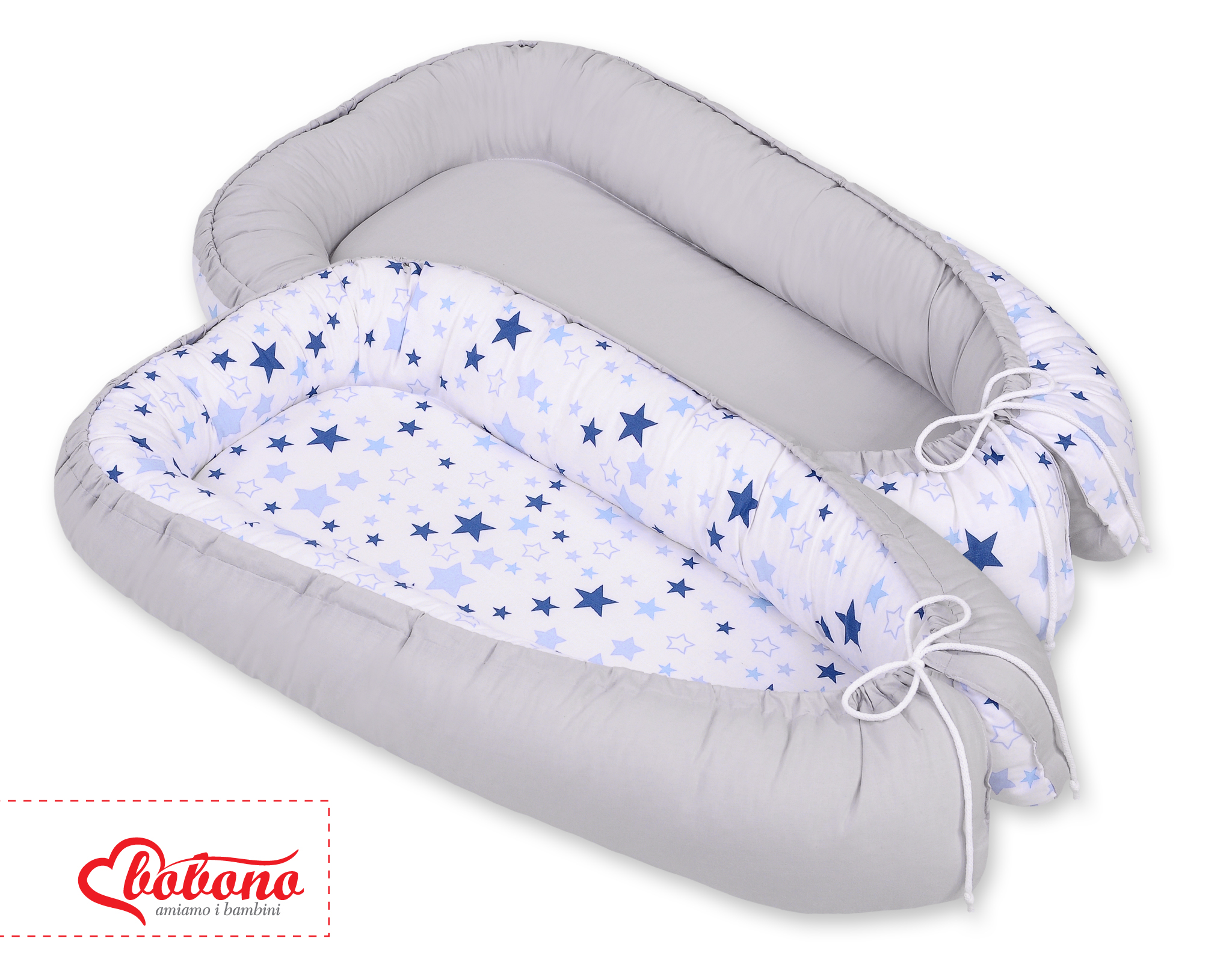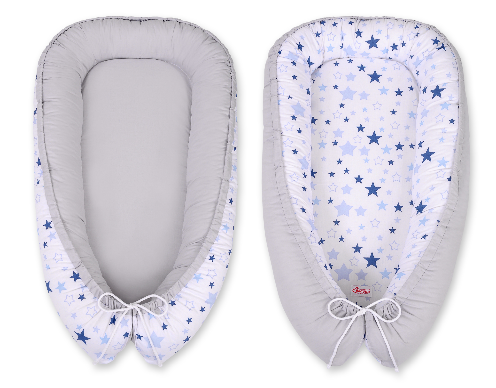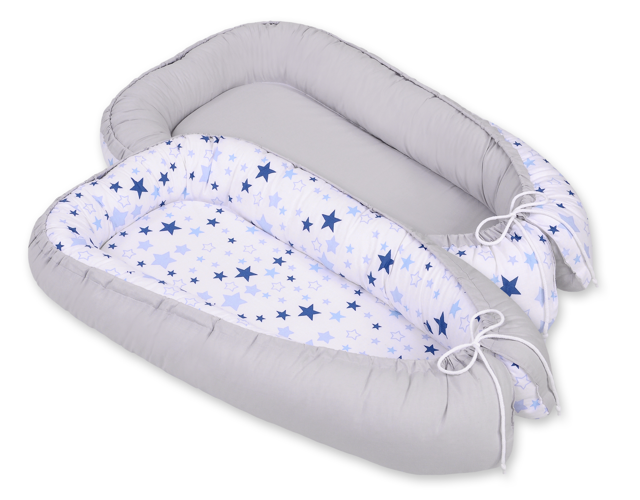 Baby Shop » Bedding sets for cots and beds » Collection FUN & JOY » Baby nest » Doublesided Babynest- blue stars/gray