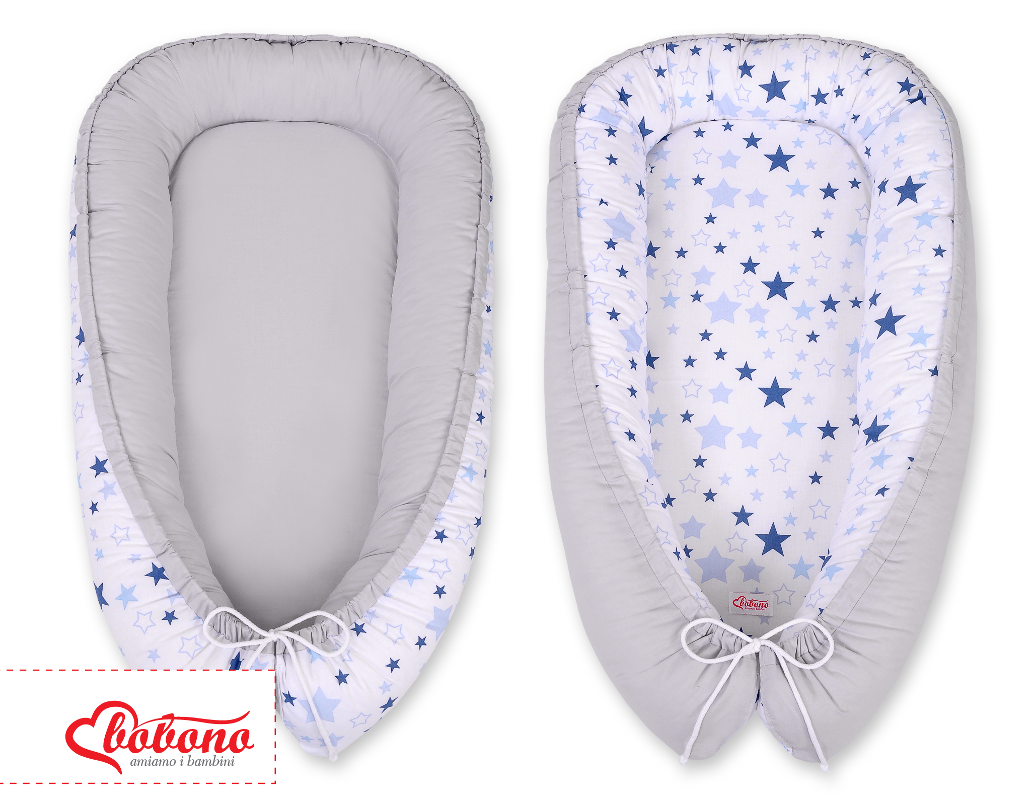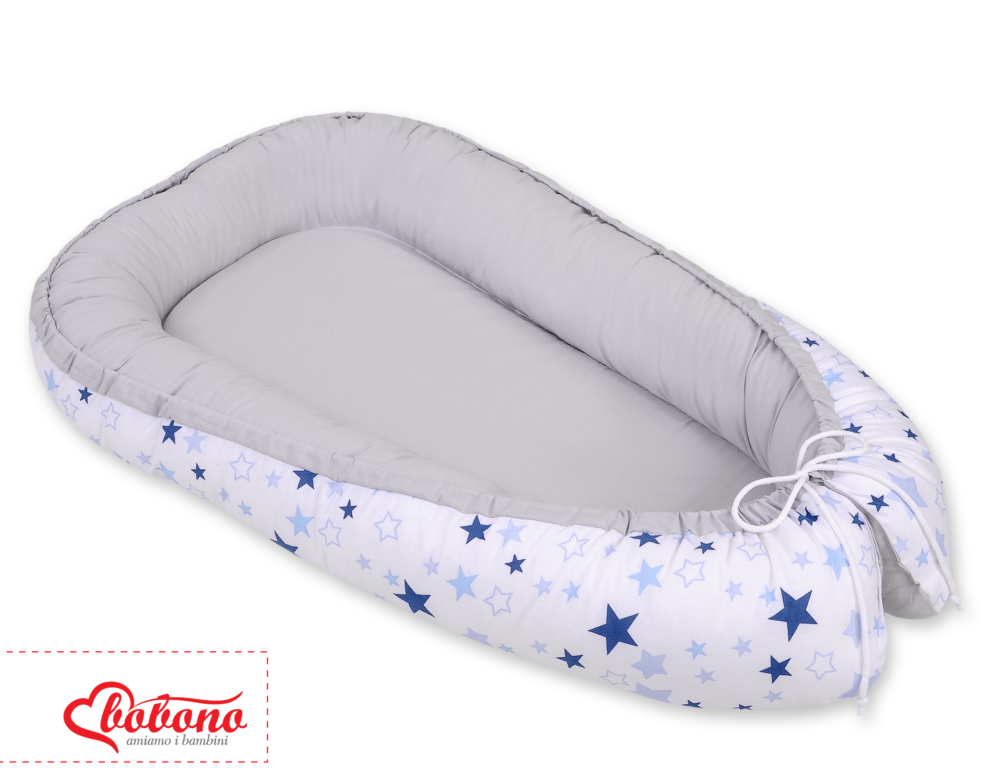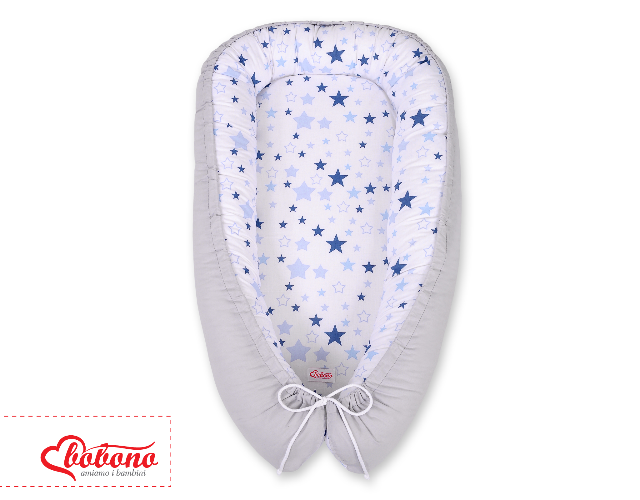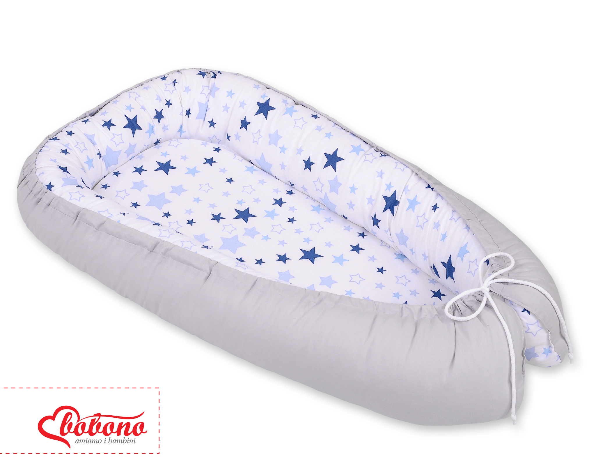 Baby Shop » Bedding sets for cots and beds » Collection FUN & JOY » Baby nest » Doublesided Babynest- blue stars/gray
