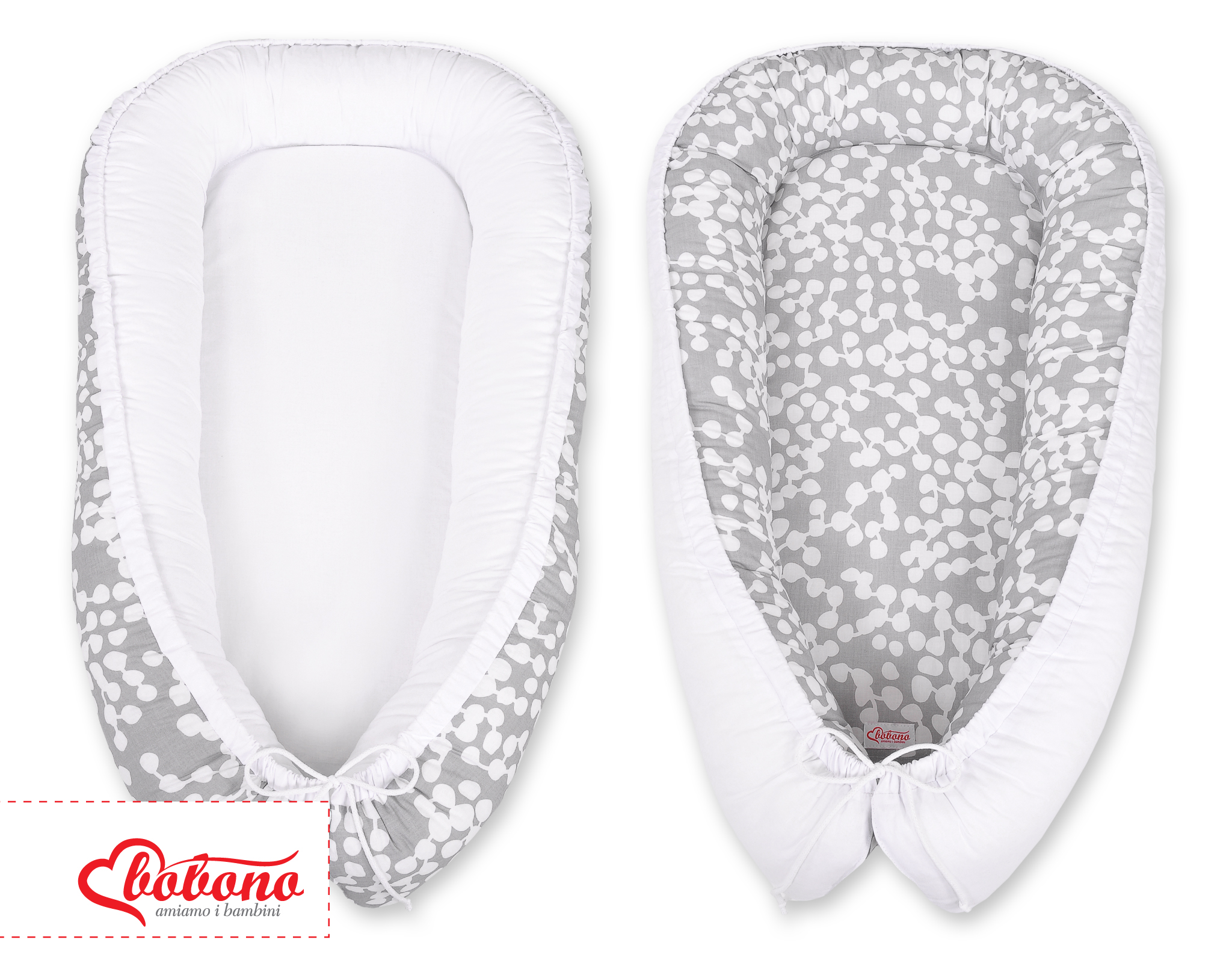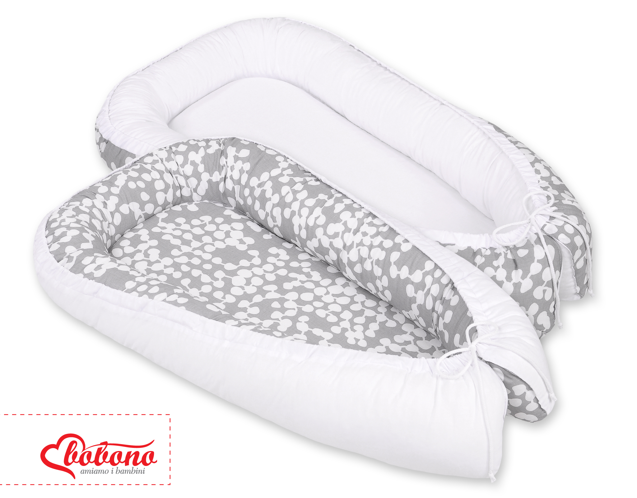 Baby Shop » Bedding sets for cots and beds » Collection FUN & JOY » Baby nest » Doublesided Babynest- bubbles gray/white