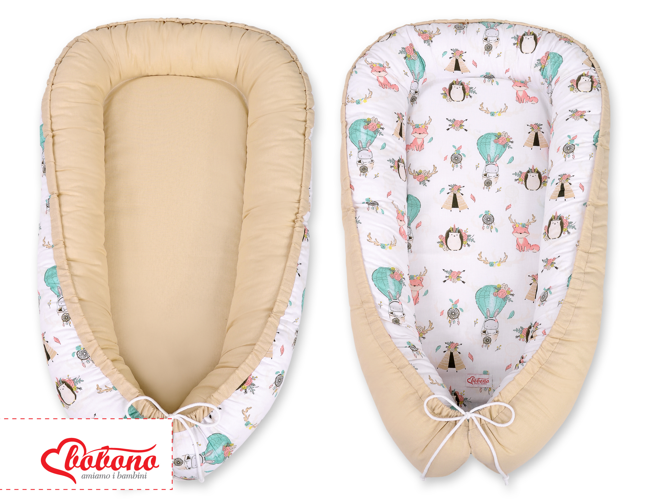 Baby Shop » Bedding sets for cots and beds » Collection FUN & JOY » Baby nest » Doublesided Babynest- foxes beige/beige