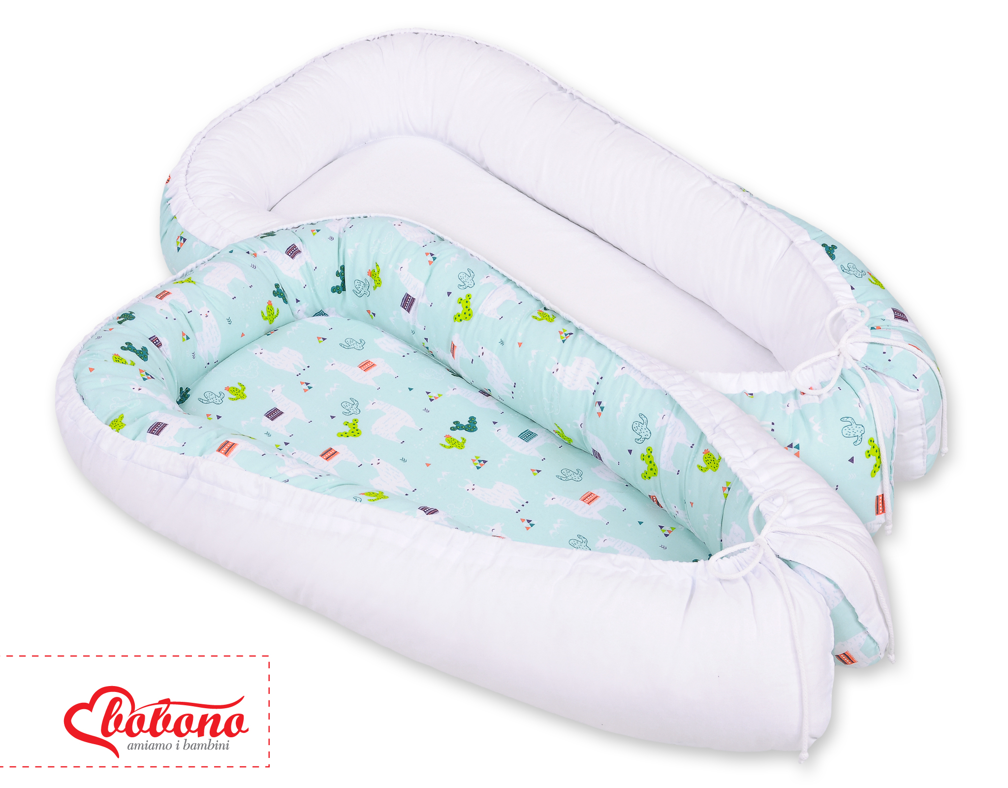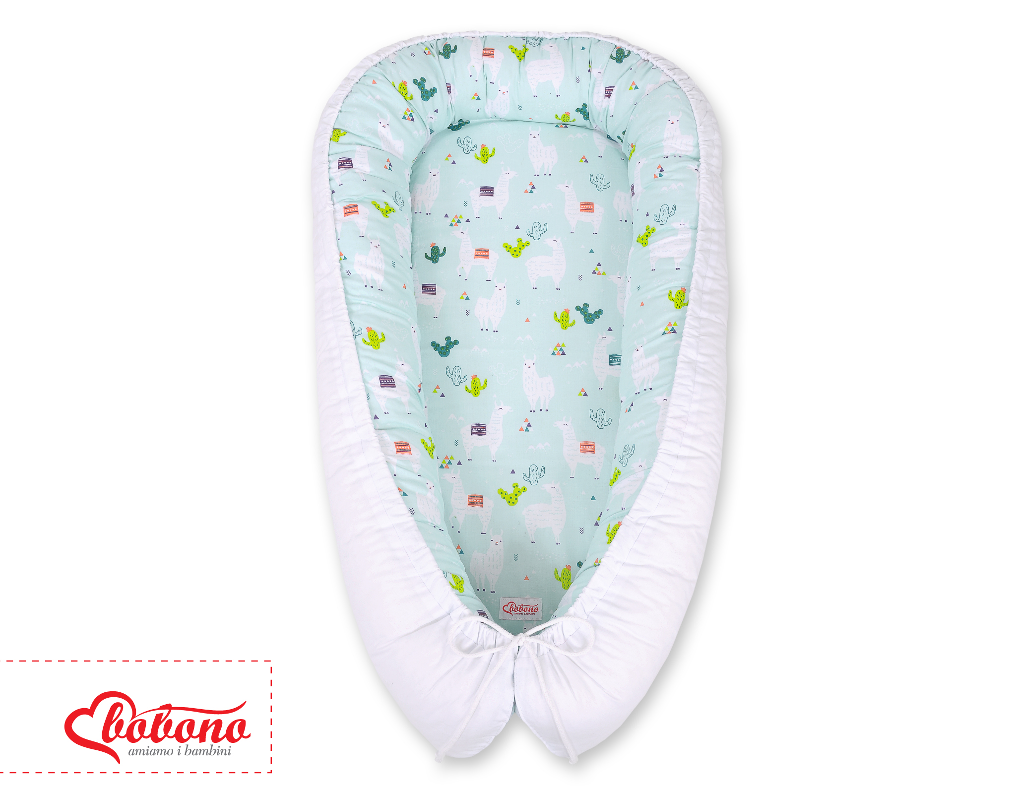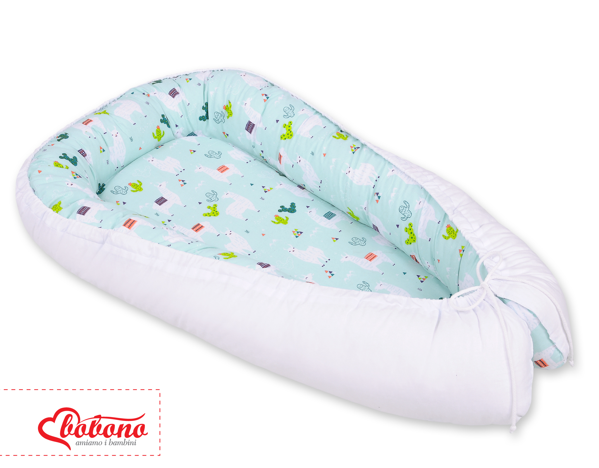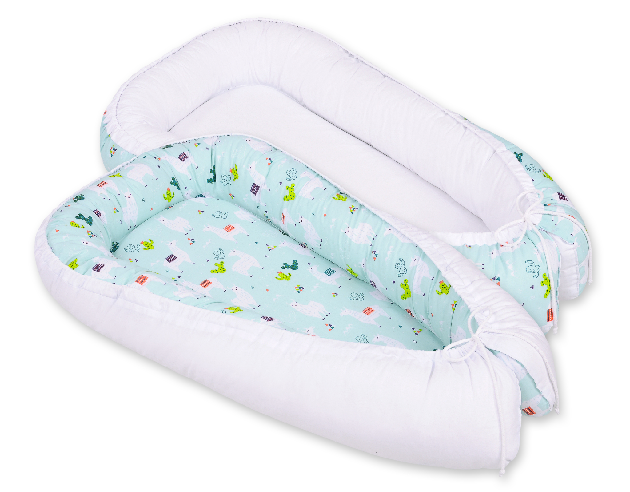 Baby Shop » Bedding sets for cots and beds » Collection FUN & JOY » Baby nest » Doublesided Babynest- lama mint/white