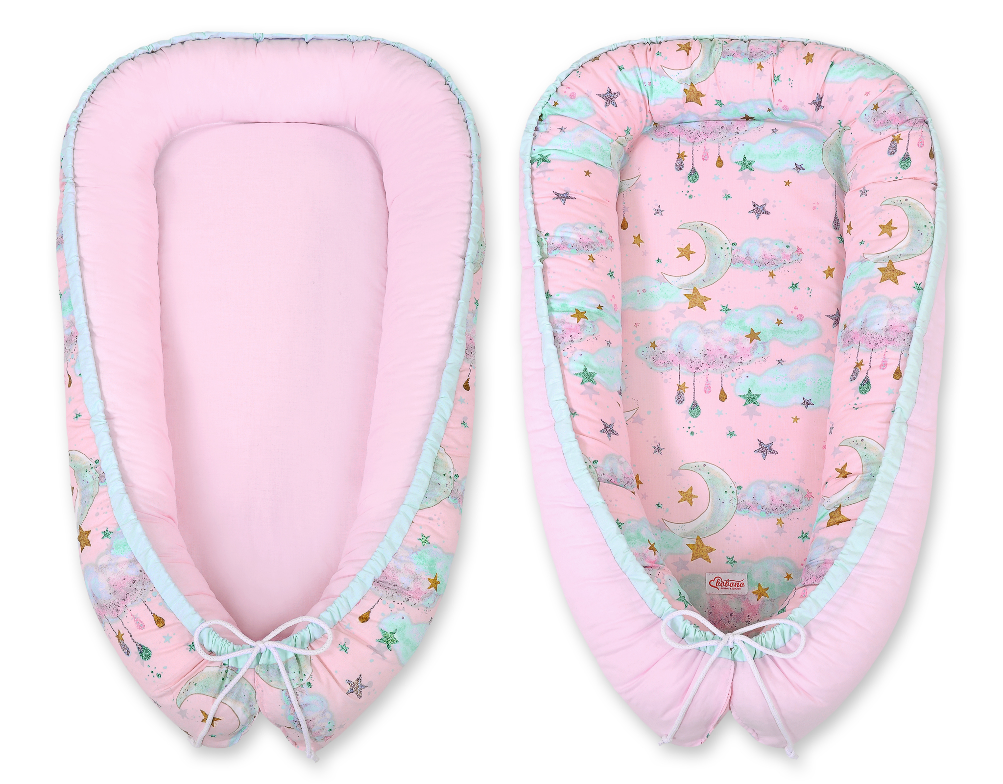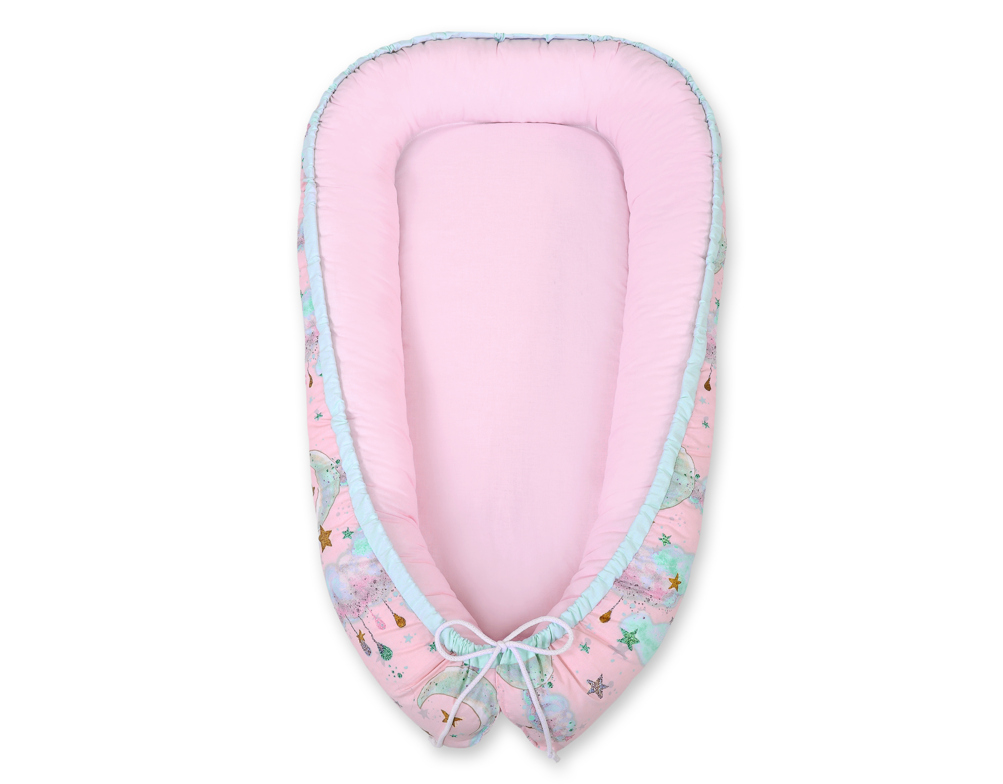 The nest is made of 100% cotton. The fabric has a delicate gilding, which gives it even more fairytale character. The filling consists of a soft and breathable Eco-Fillball. They are thin soft fibers formed into small balls with additional ventilation channels.