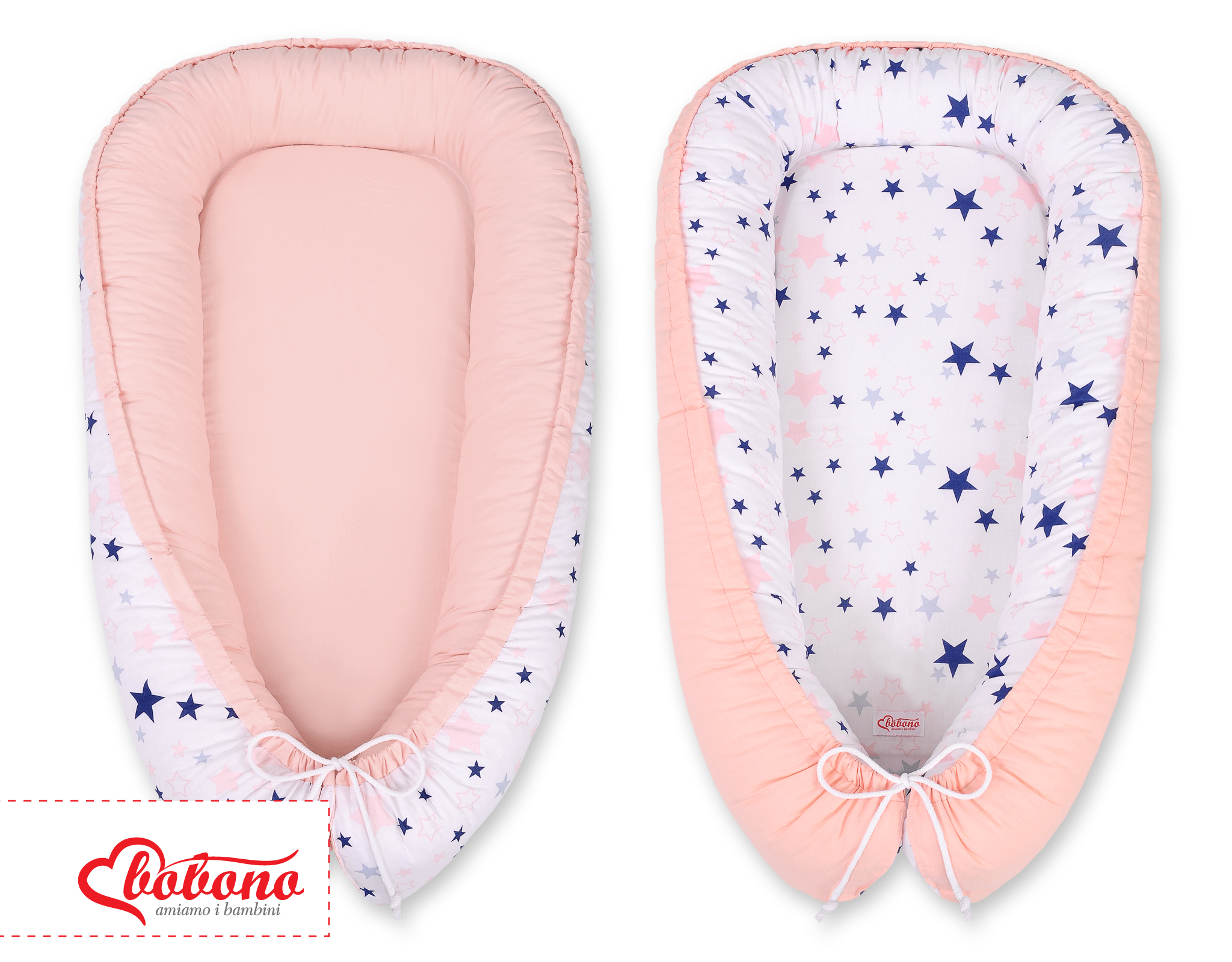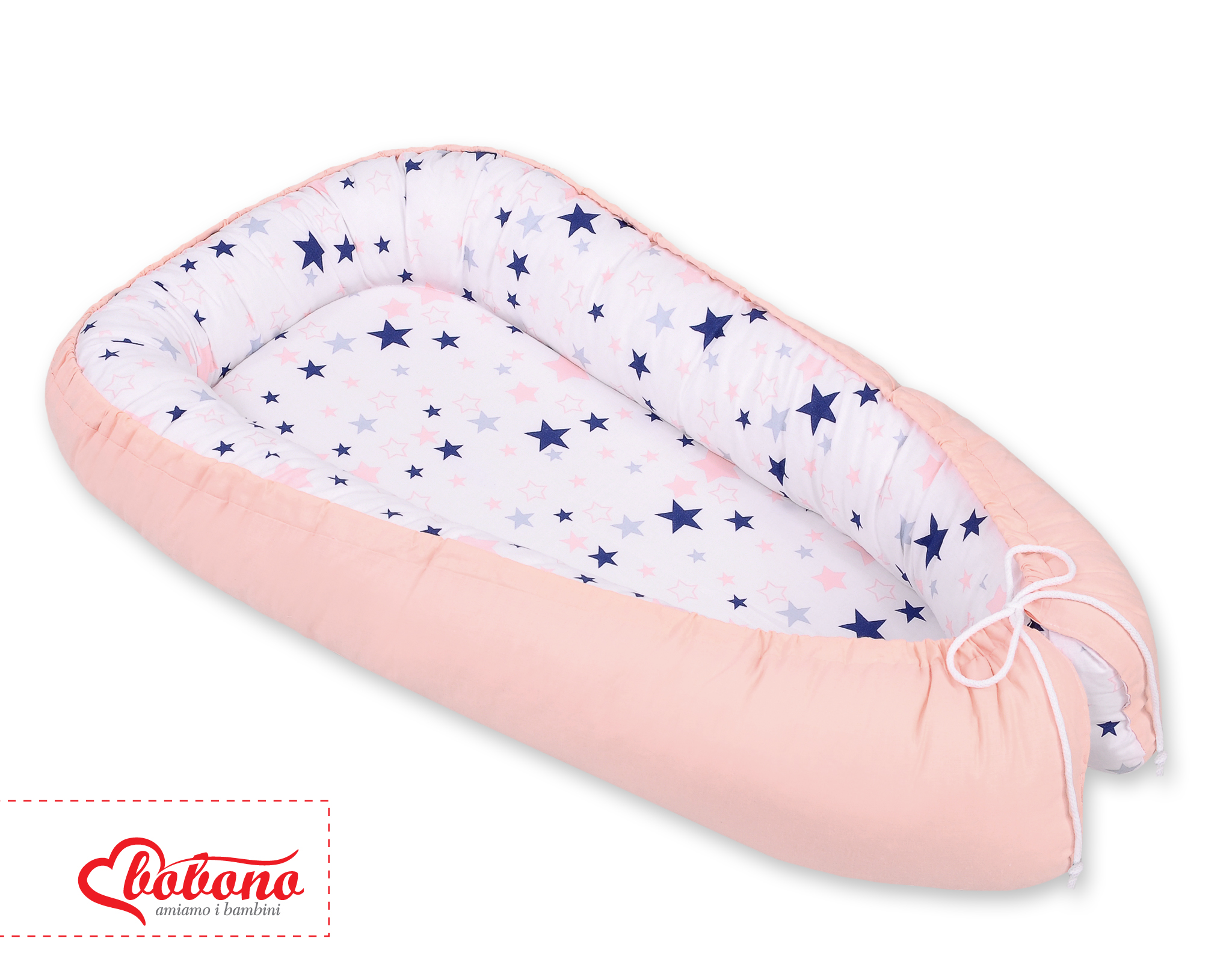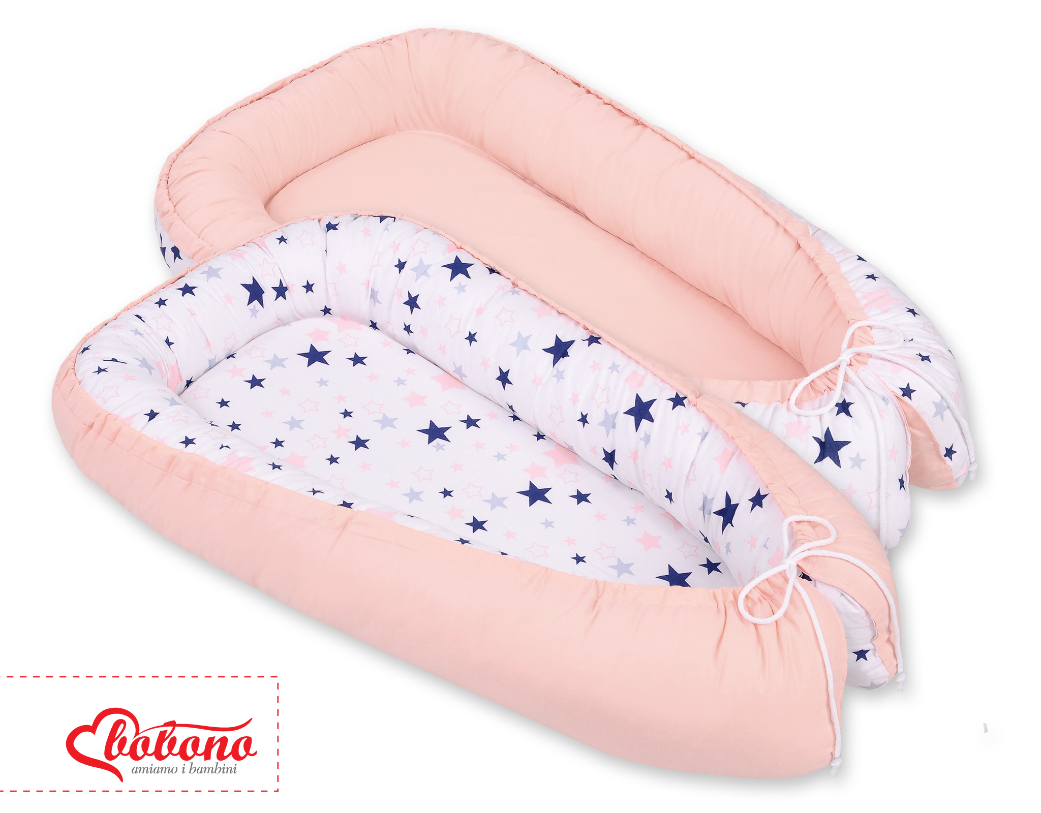 Baby Shop » Bedding sets for cots and beds » Collection FUN & JOY » Baby nest » Doublesided Babynest- navy blue stars/powder pink