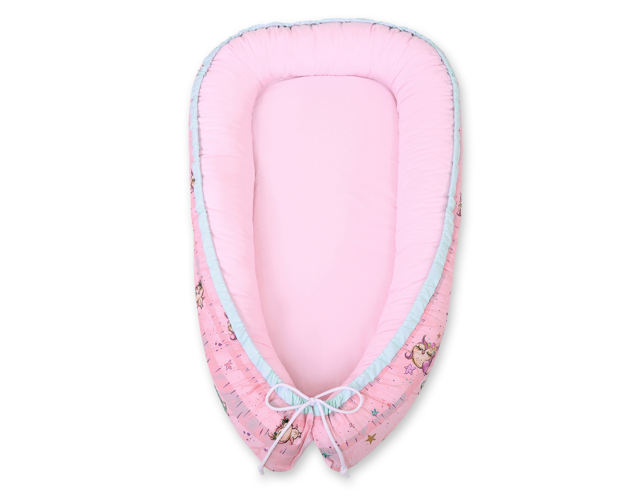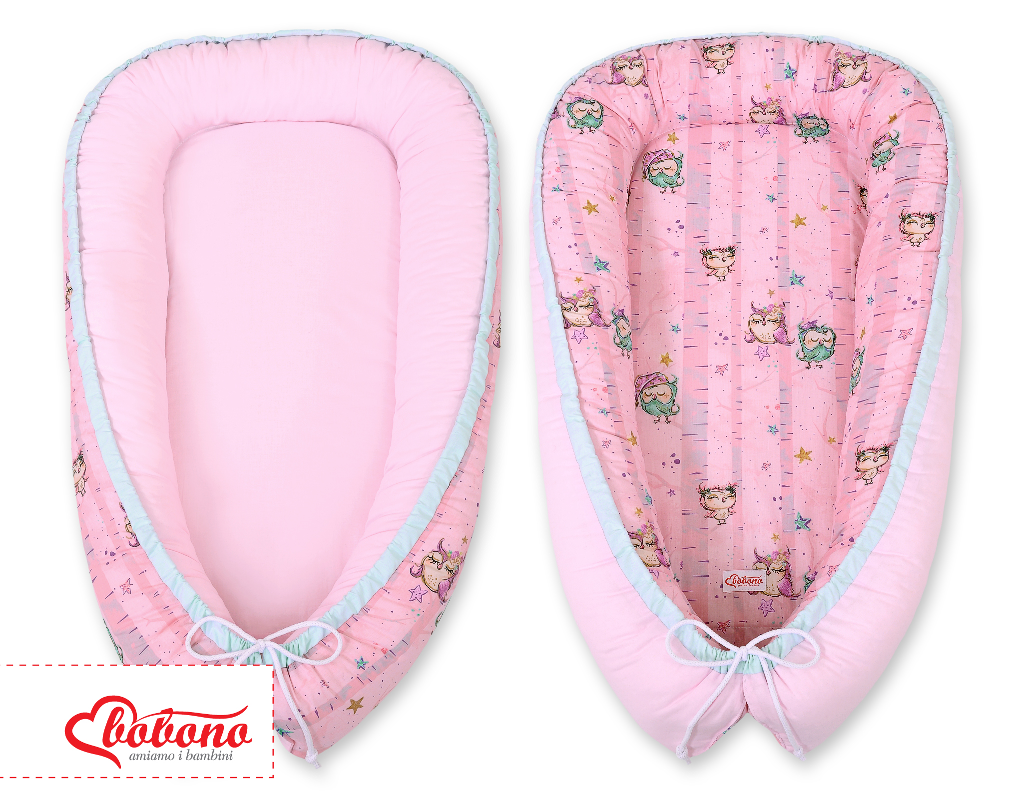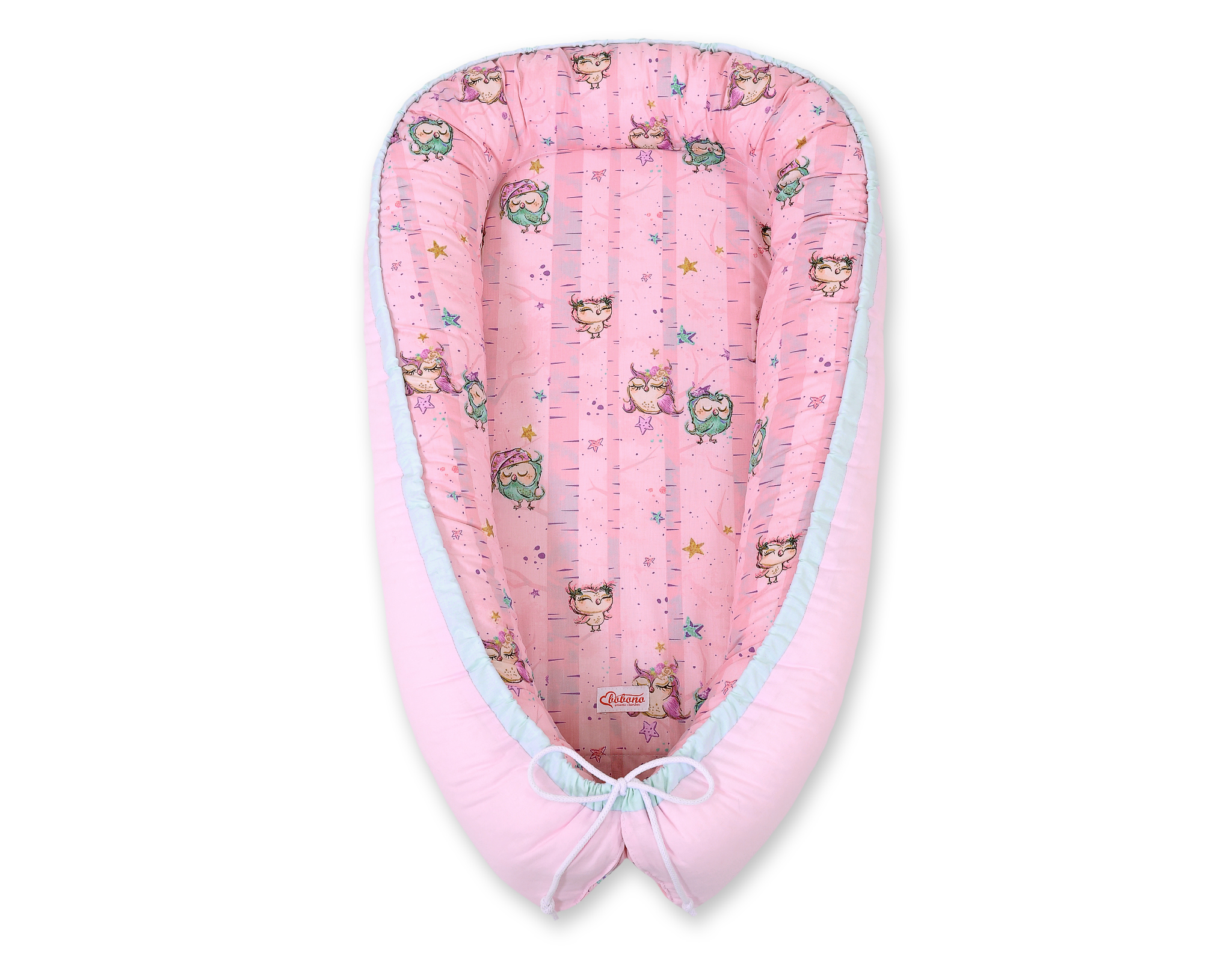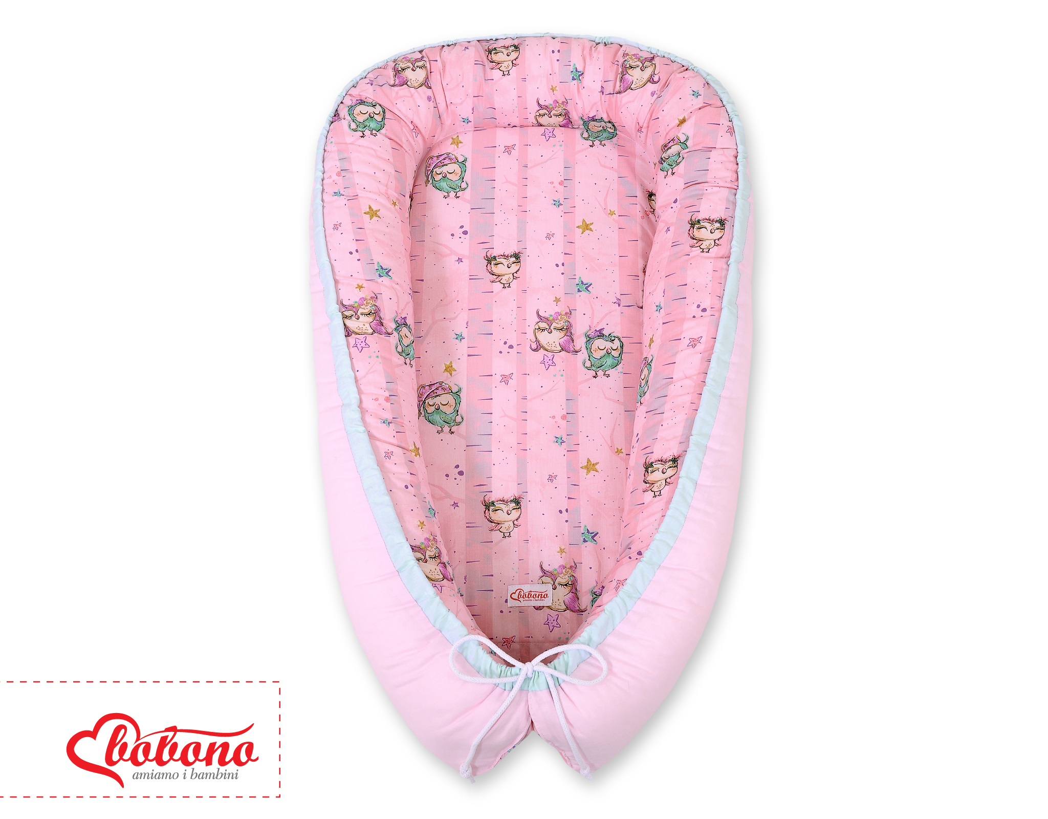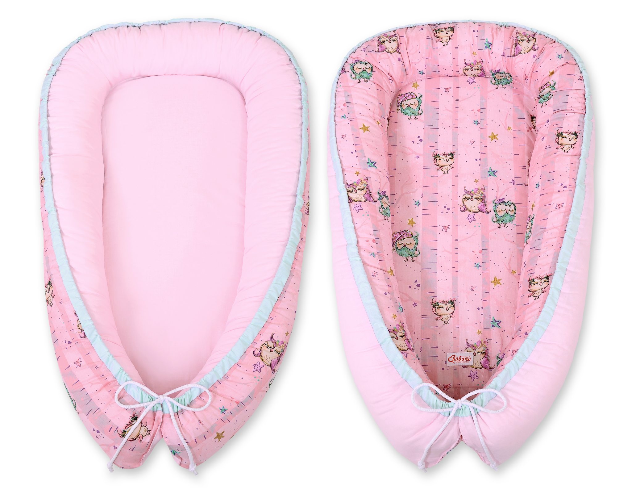 Baby Shop » Bedding sets for cots and beds » Collection FUN & JOY gold (special edition) » Baby nest » Cocoon » Doublesided Babynest- Owls pink-mint/pink