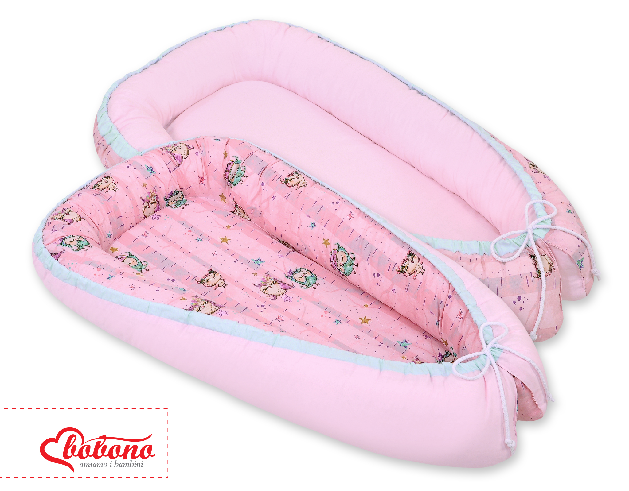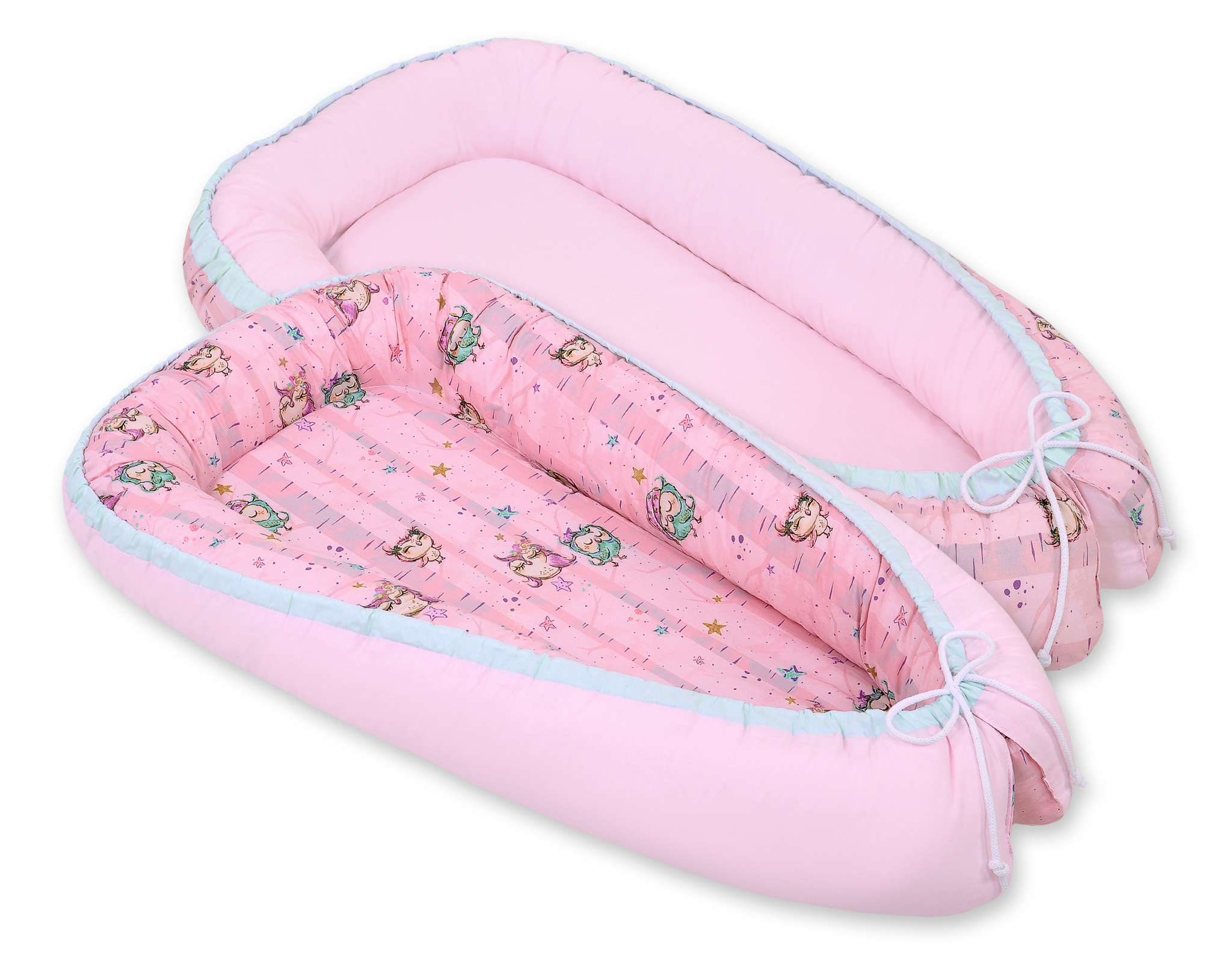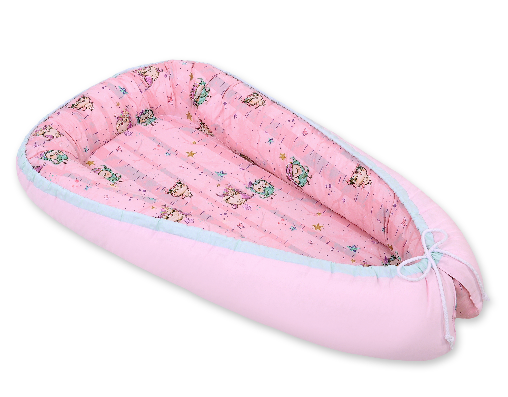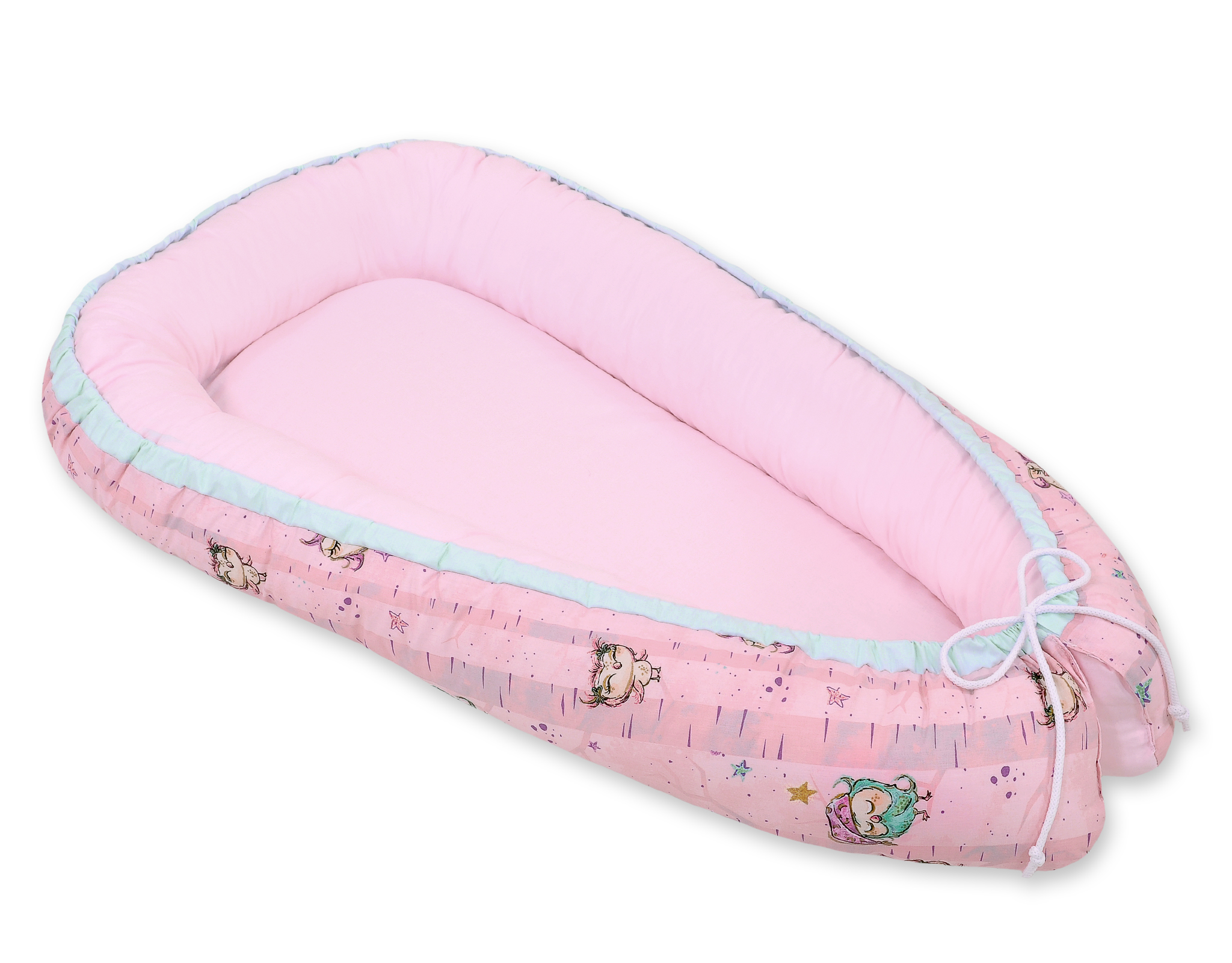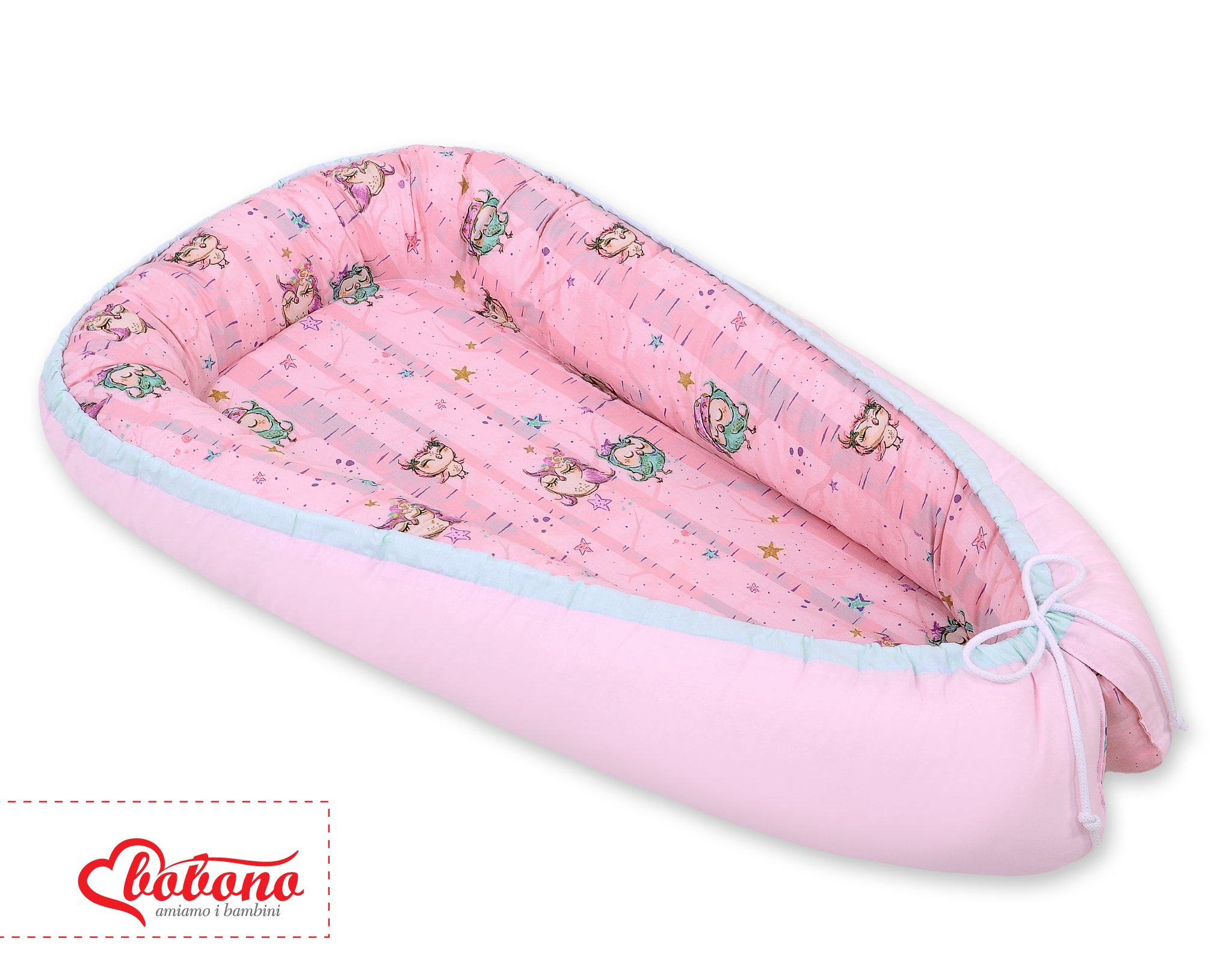 Baby Shop » Bedding sets for cots and beds » Collection FUN & JOY gold (special edition) » Baby nest » Cocoon » Doublesided Babynest- Owls pink-mint/pink