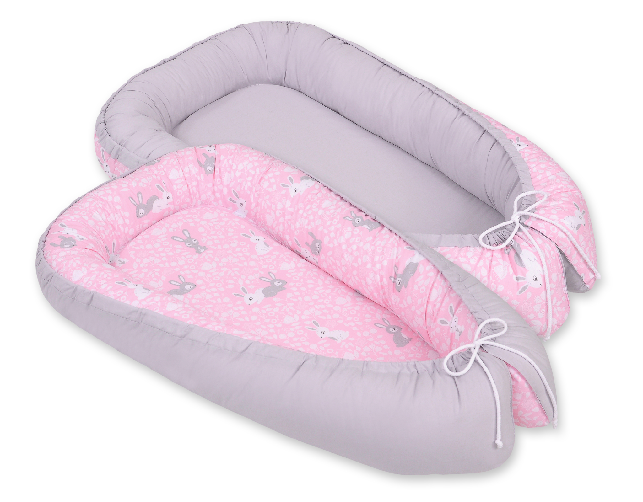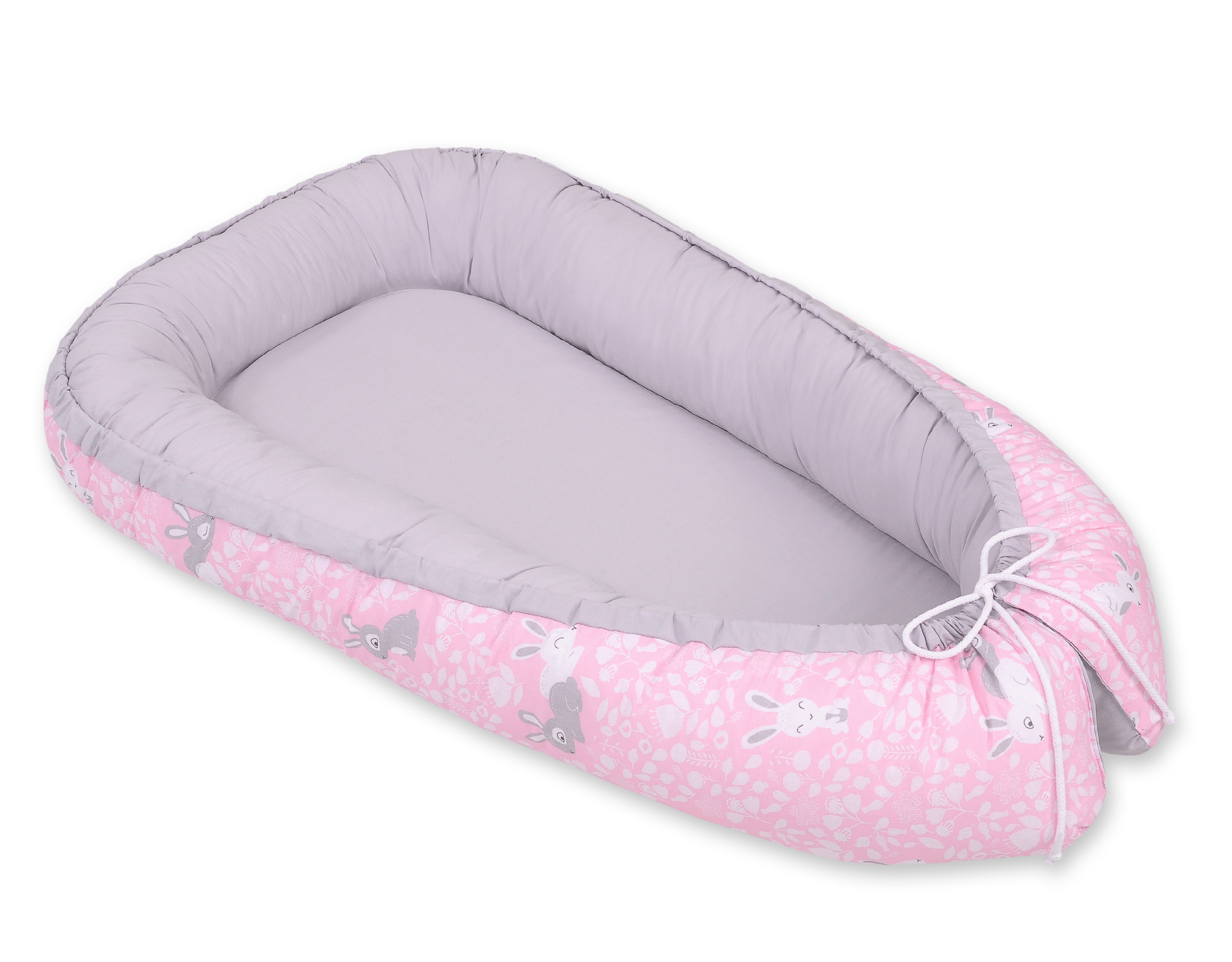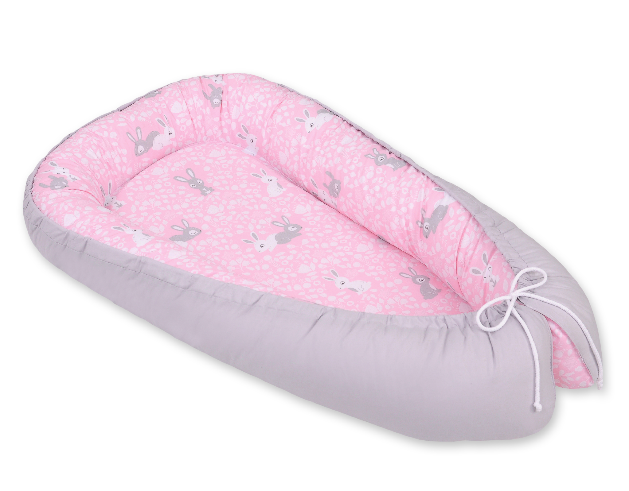 Doublesided Babynest- pink rabbits/gray